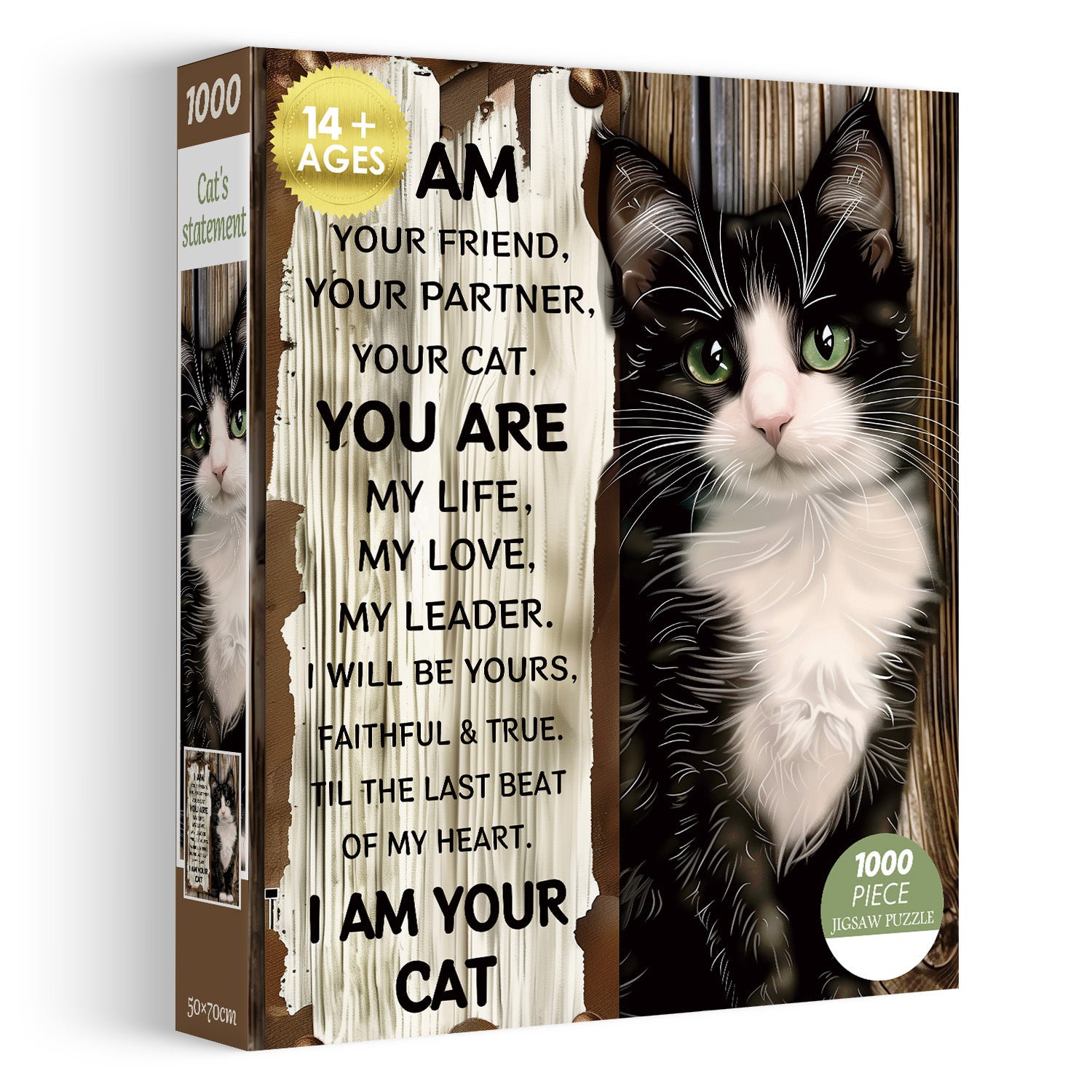 🐱📜Cat's Statement Puzzle: This puzzle features a deeply affectionate cat, its eyes revealing boundless loyalty and love for its owner. Beside the cat is a heartwarming vow, expressing its commitment as a friend, companion, and pet until its last breath.