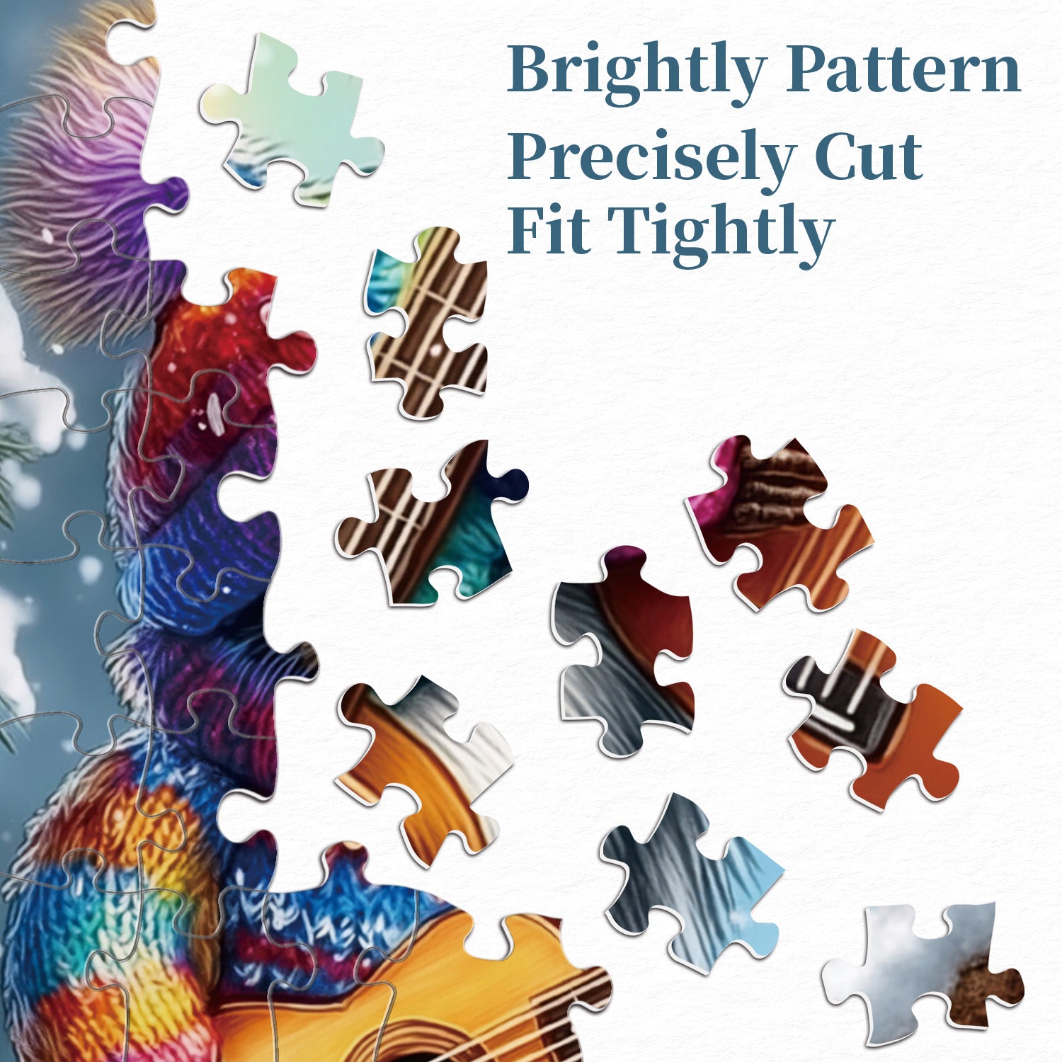 🐦🎵Guitar Birds Jigsaw PuzzleA cow dressed in cowboy attire centers on a strong Western style. Details such as denim appliqués, metal buttons, and tassels on the cow's body add a touch of fun to each puzzle piece. 🎸❄️