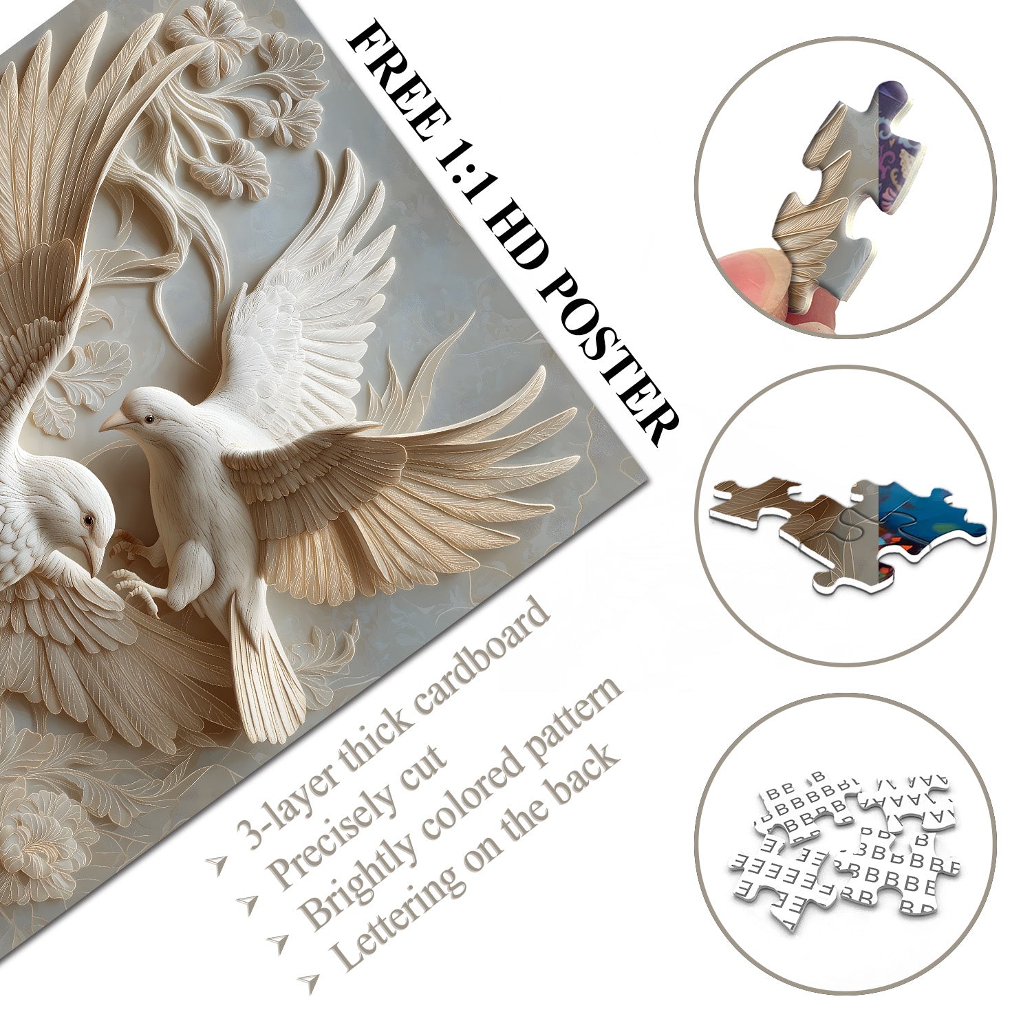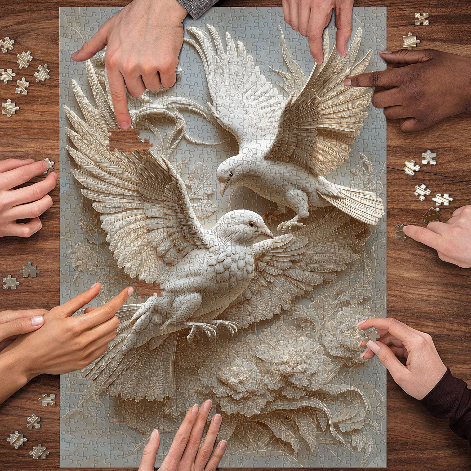 🐦🌈【The Carved BirdThis puzzle features two flying doves, symbols of peace and tranquility, bringing a sense of serenity to your puzzle-solving experience. The doves are surrounded by beautiful flowers, seemingly telling a story about the harmony of nature, allowing you to complete a work of art as you finish the puzzle.🌺🌿