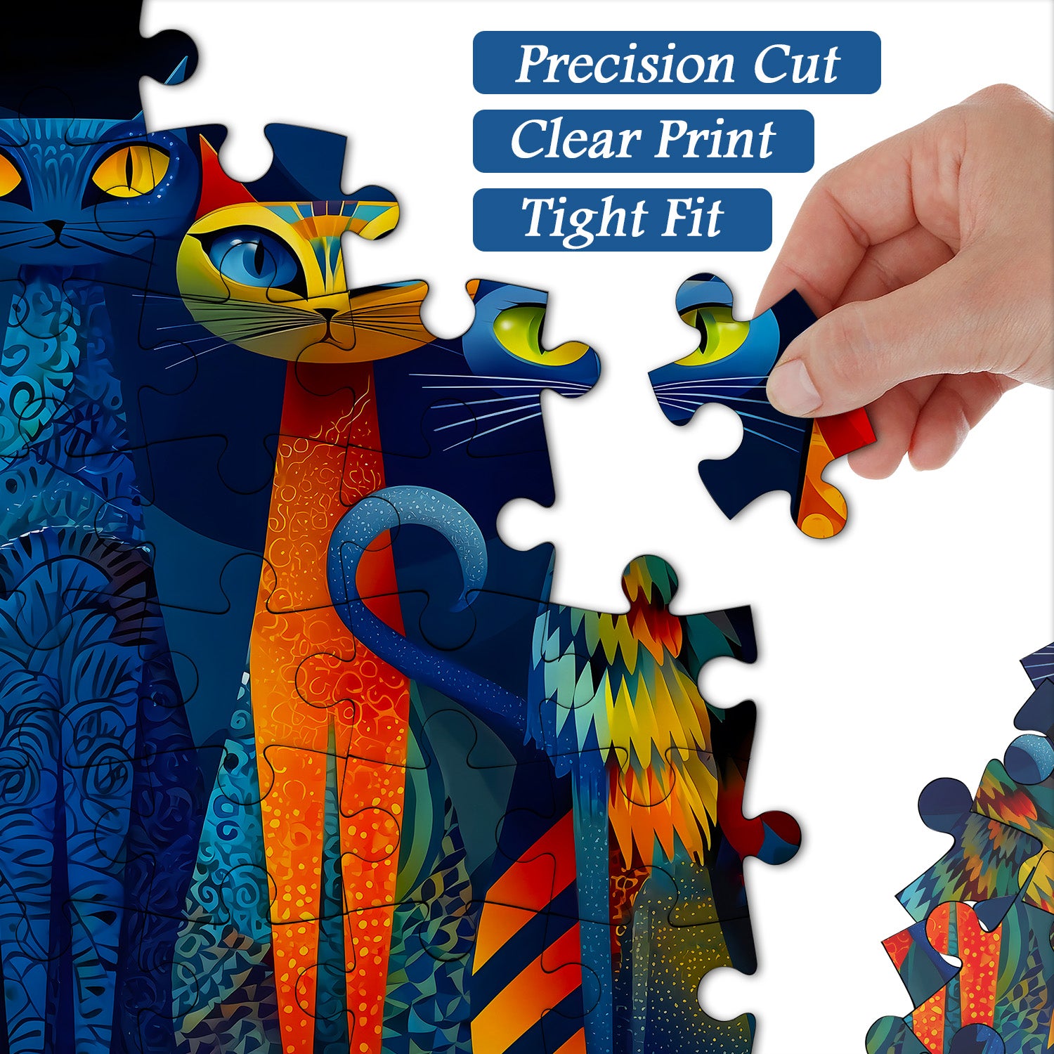 🐱🎭Vivid Dream Cats: This puzzle uses a modern art style, cleverly combining geometric patterns and abstract elements to depict a group of mysterious and charming cats, each with unique colors and patterns, as if from a fantasy world. The cats are dressed in colorful coats, full of vitality and life.🌈🎨