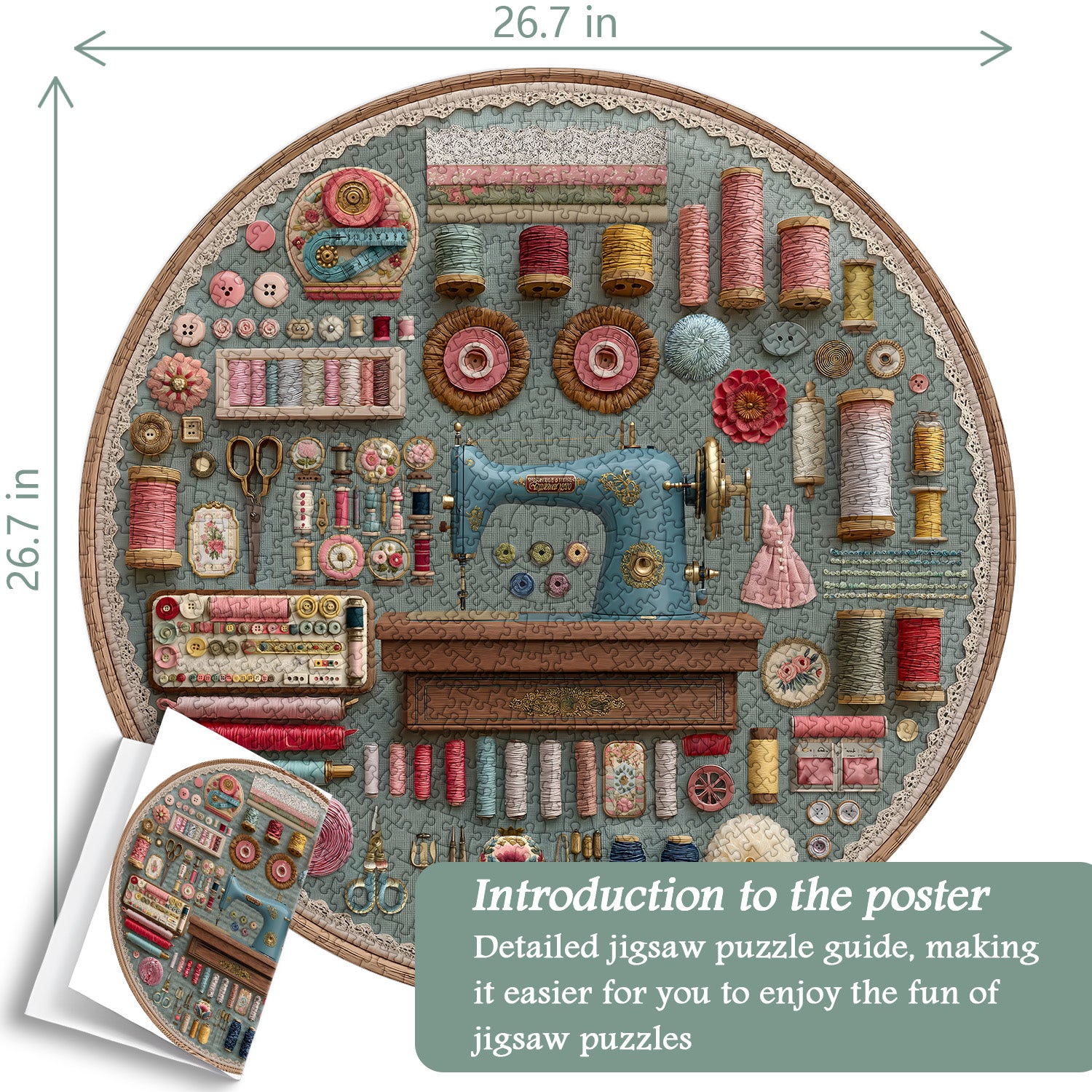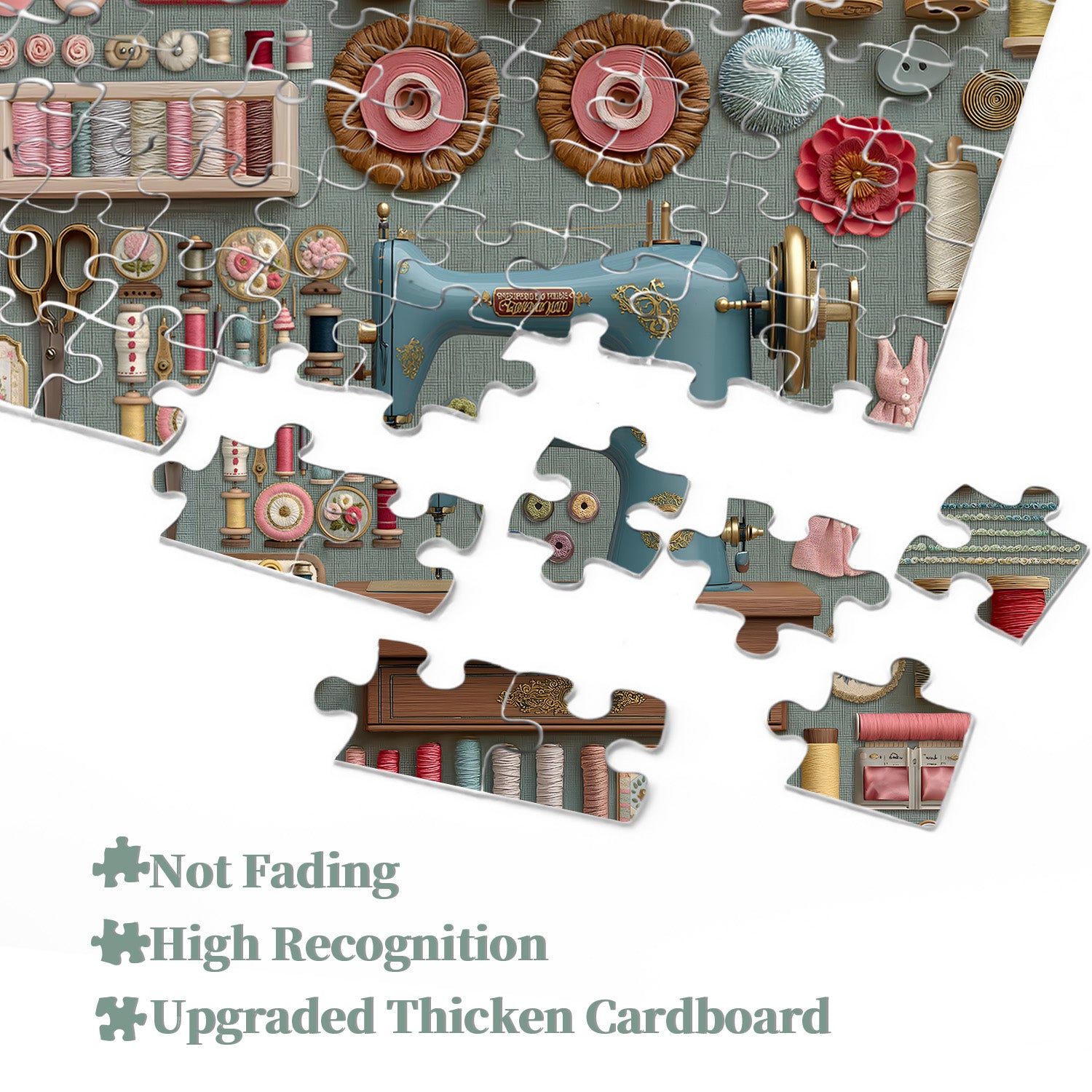 💐【Exquisite Workmenship】Vintage Sewing puzzle are made of 100% recycled thickened cardboard, vividly printed with organic inks, high-quality puzzles, precise cutting, each piece fits tightly, and the splicing process is smooth and fluent.