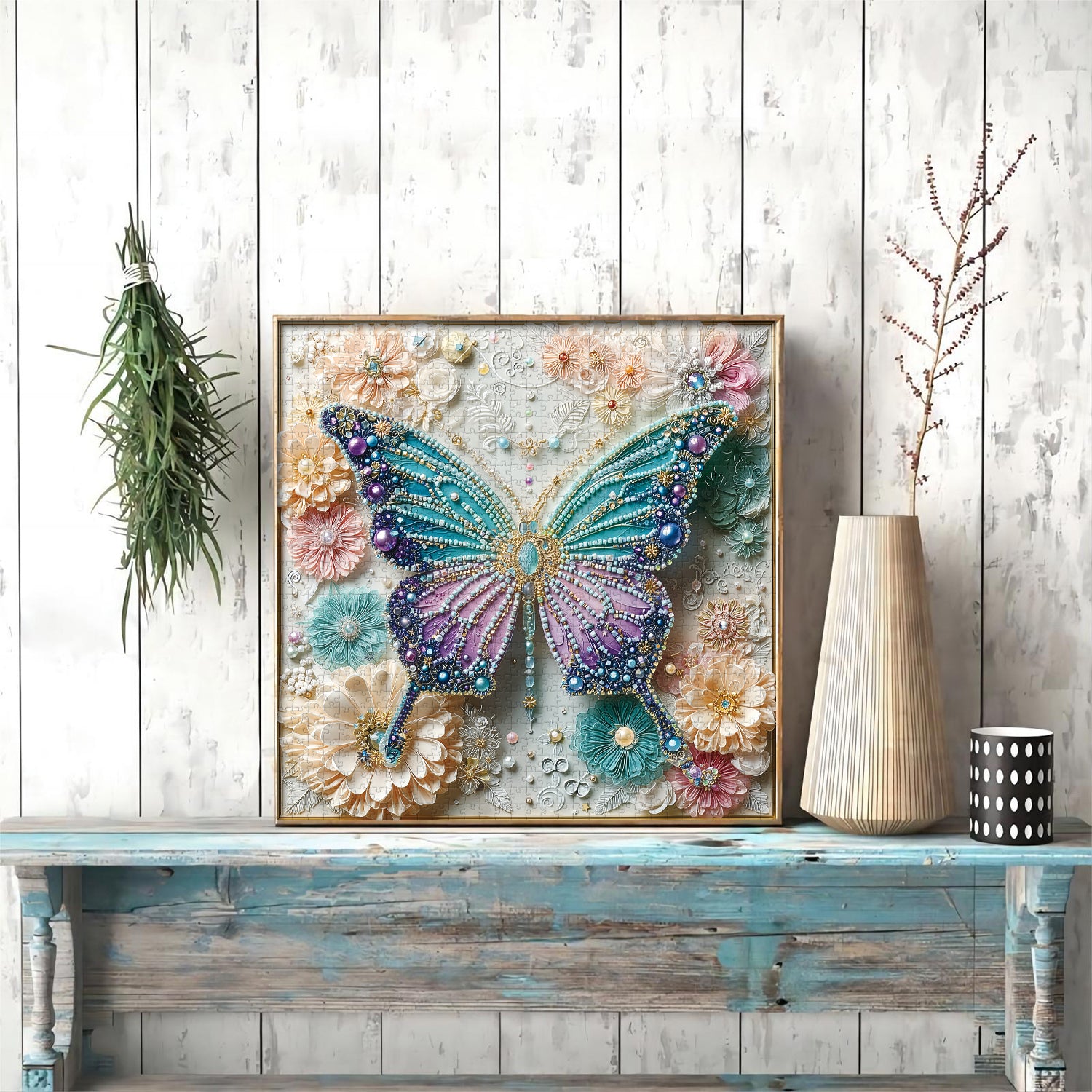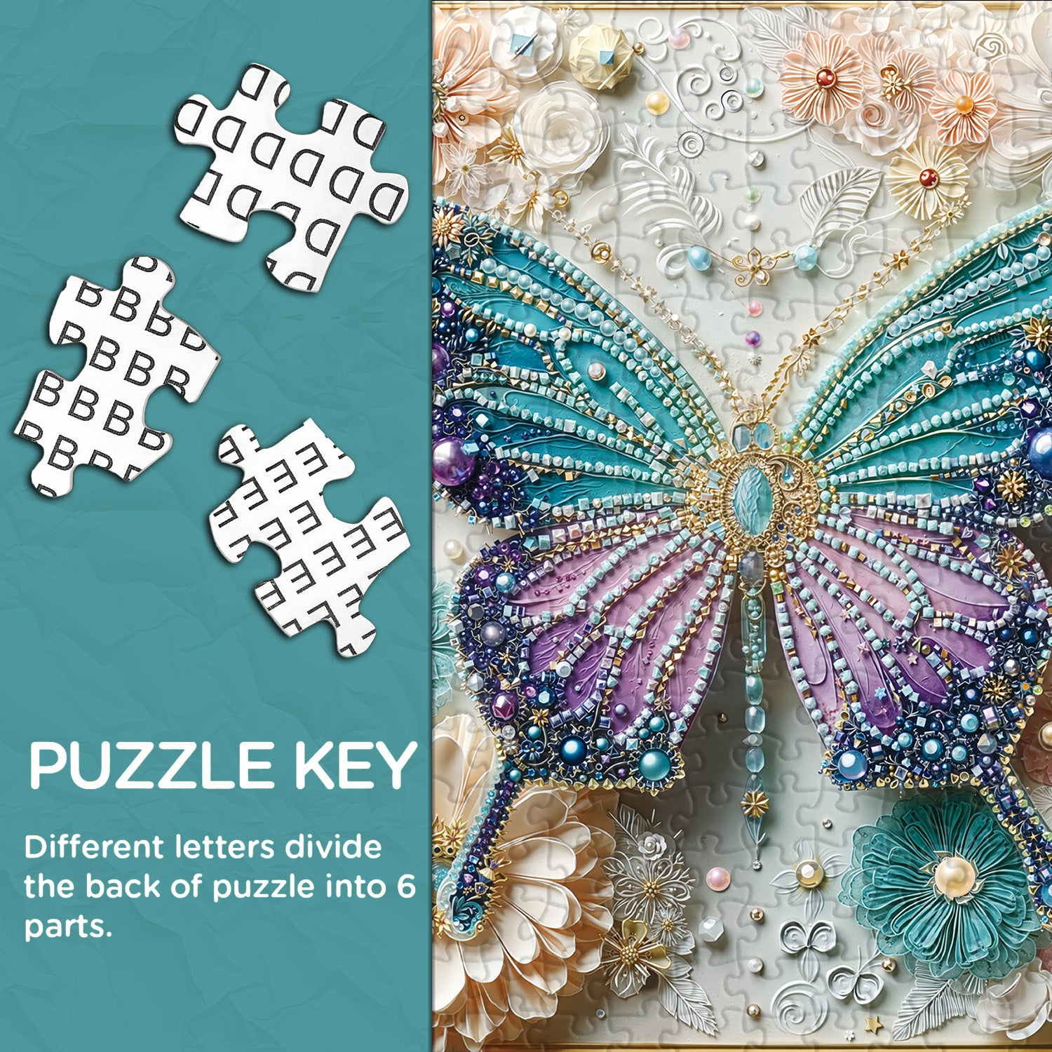 🌺🦋Opulent Wings:The puzzle depicts a butterfly inlaid with gemstones, each gemstone shimmering with captivating light. The butterfly's wings are adorned with a rich tapestry of colors, from deep blue to emerald green to violet, creating a visual feast. This adds a vibrant backdrop to the butterfly's graceful movement.🌈