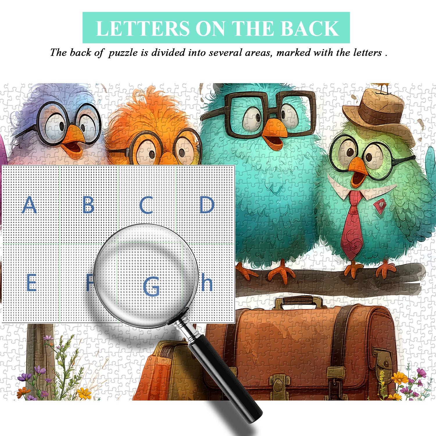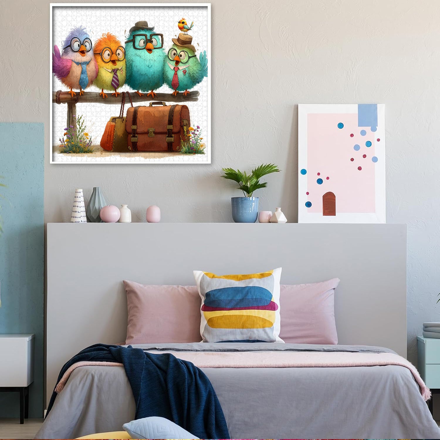 🐦🧳【Colorfeather Expedition】This puzzle features four stylishly dressed birds wearing glasses and ties, seemingly ready to embark on a wondrous journey. The birds perch on a branch, with a vintage-style suitcase beside them, creating an atmosphere of impending travel.🌸🌟