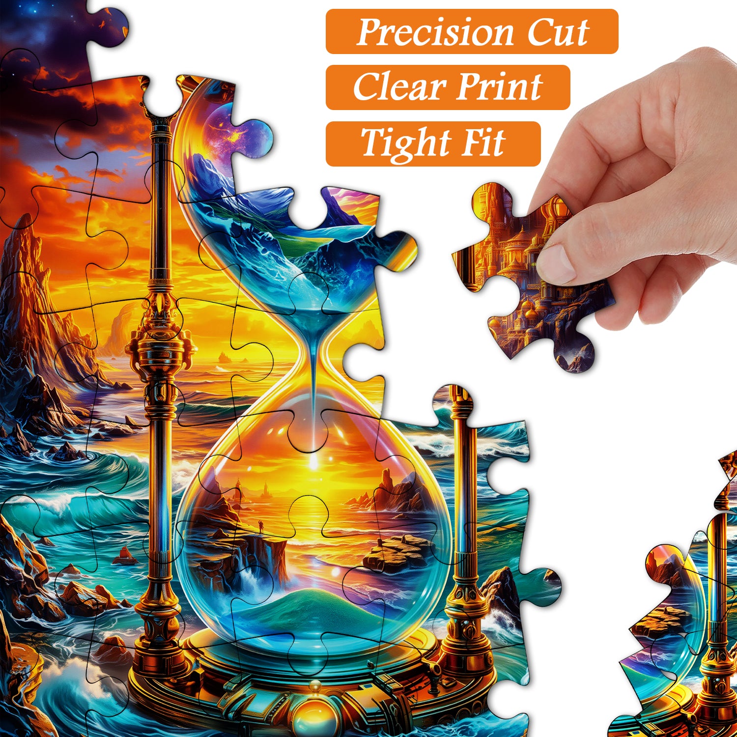 🕰🌌【Cosmic Hourglass】This puzzle centers on a mysterious hourglass, which not only keeps time but also guards two distinct worlds. The upper half of the hourglass depicts tranquil mountains under a starry sky, while the lower half represents a turbulent ocean; each world is filled with fantasy. The hourglass flows not only with time but also as the meeting point of two worlds, each grain of sand carrying countless stories.🌄🌠