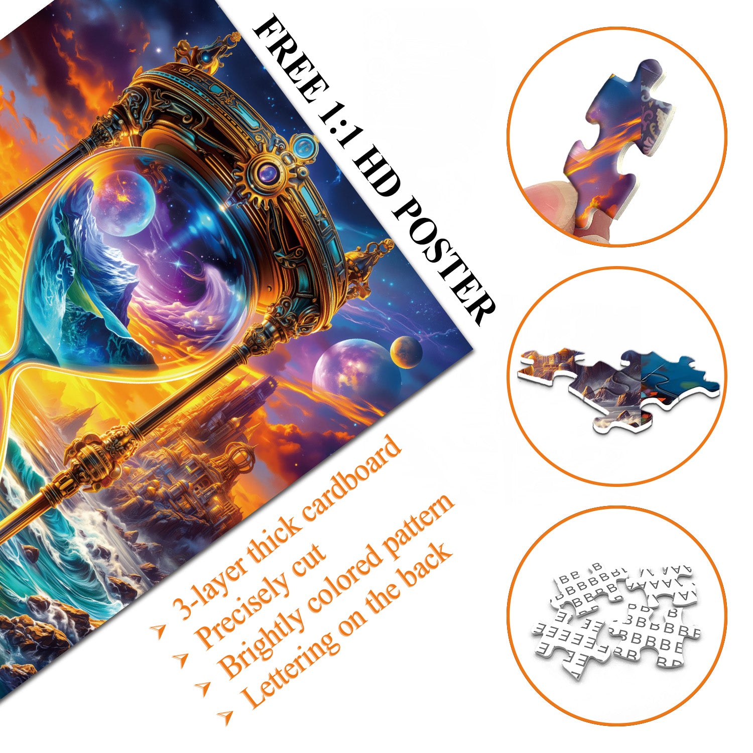 🧩【Exquisite Workmenship】1000 pieces, comes with a sturdy box and a high-definition poster. 50*70 cm when completed. Lettering on the back.