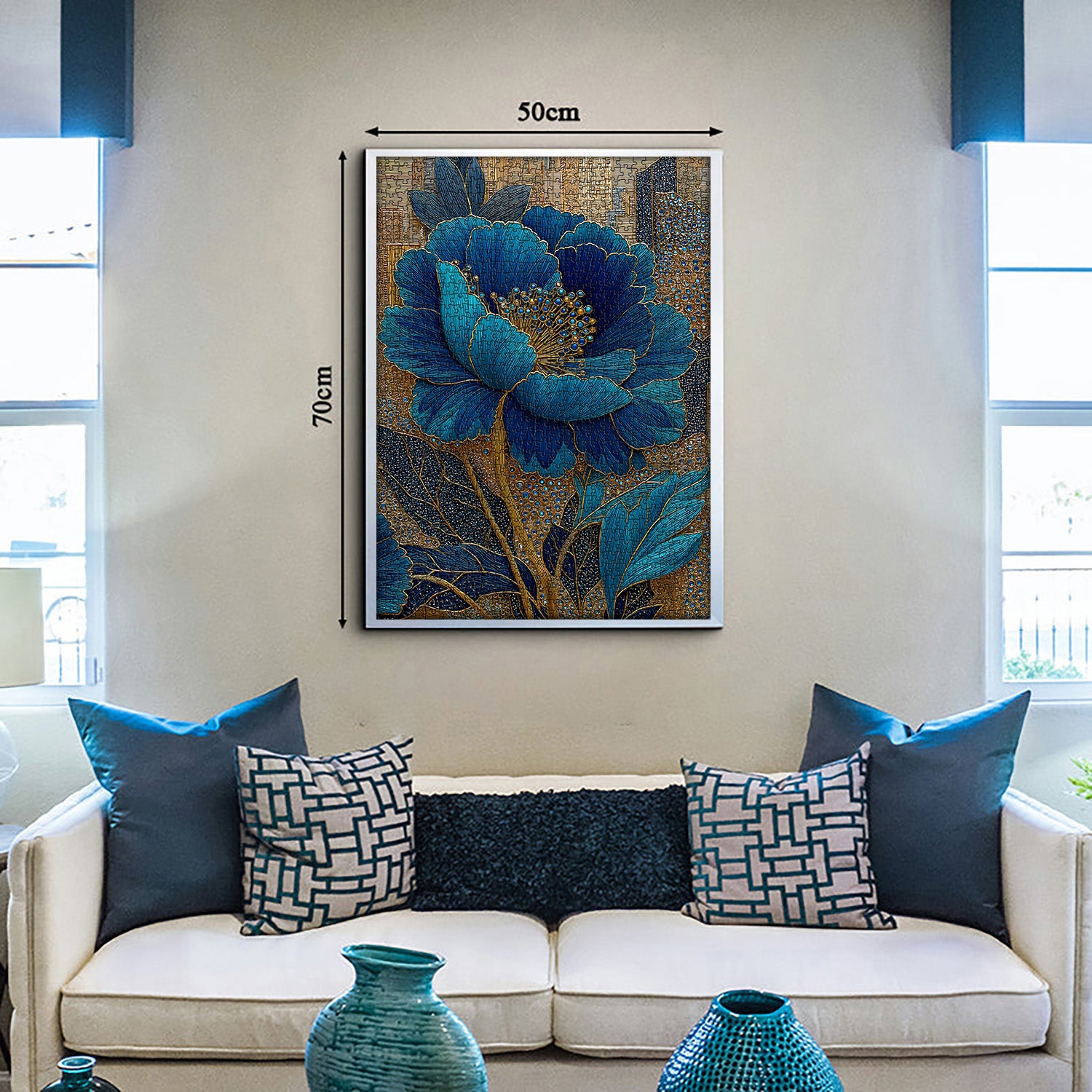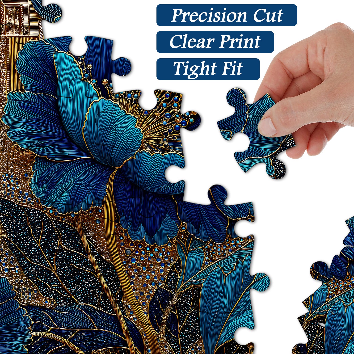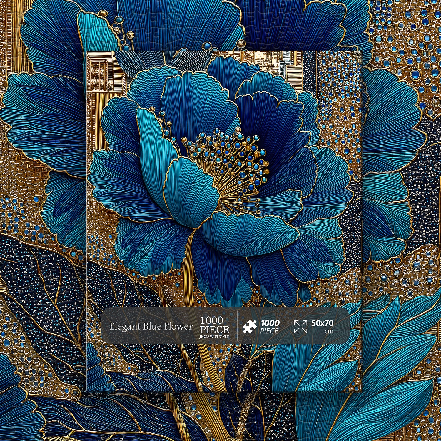 🌺🖼️【Elegant Blue Flower】This puzzle centers on a magnificent blue flower, with golden veins and details outlining its elegance and nobility, captivating at first sight. Tiny, jewel-like beads adorn the petals, each shimmering with a mesmerizing light, as if inviting you into a world of mystery and luxury.🌿