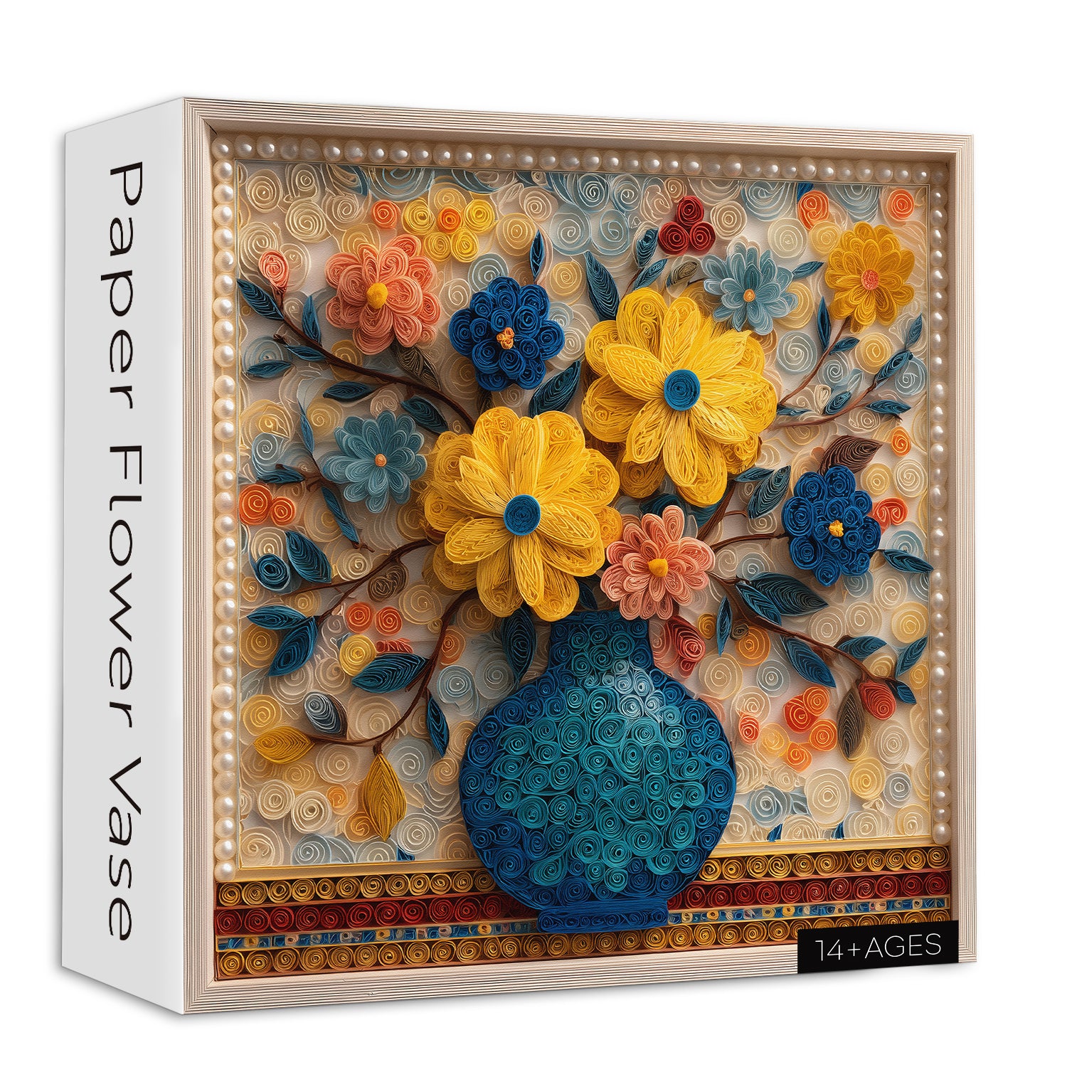 🏺🌼【Paper Flower VaseThis jigsaw puzzle centers on a beautifully decorated blue vase filled with vibrant flowers, like messengers of spring. The flowers, predominantly yellow, orange, and blue, are lifelike, conveying the vitality and energy of spring.🌺
