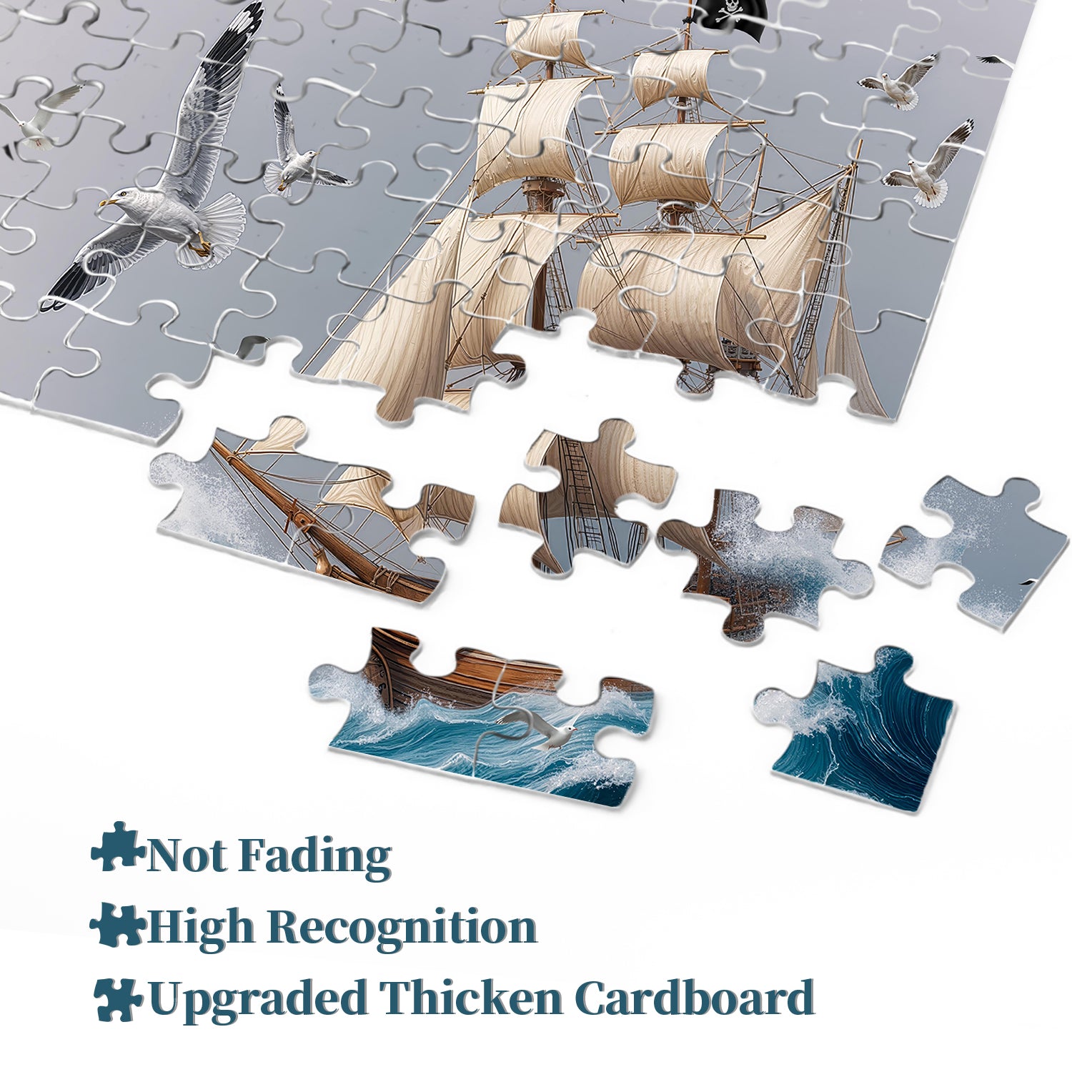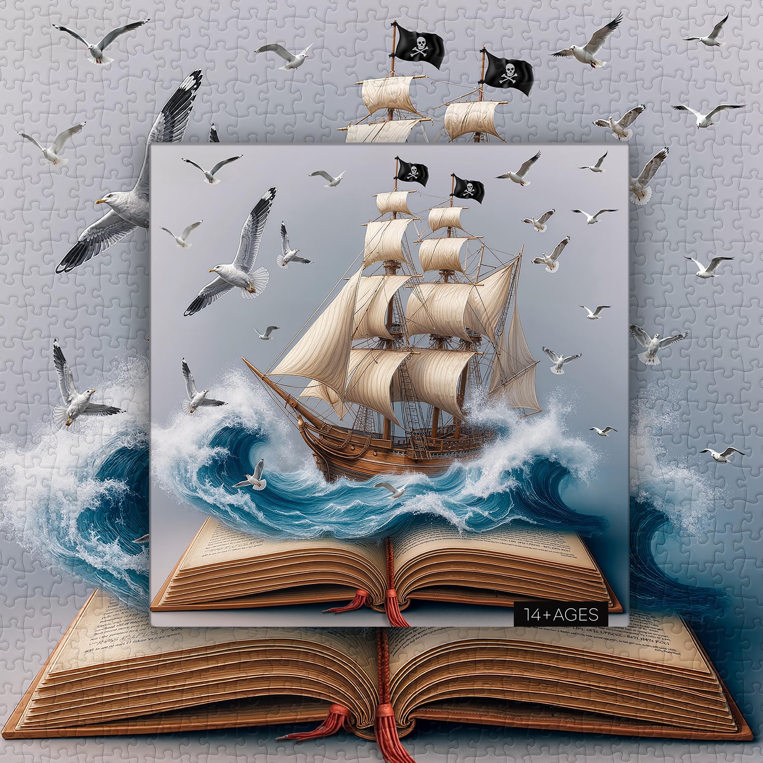 🚢📘【Set Sail】Opening this ancient adventure book, this puzzle features a pirate ship, braving the wind and waves, sailing through the azure ocean, symbolizing the spirit of freedom and exploration. Seagulls soaring in the sky add a vivid and dynamic touch to this nautical chart, as if guiding the fleet.🌊