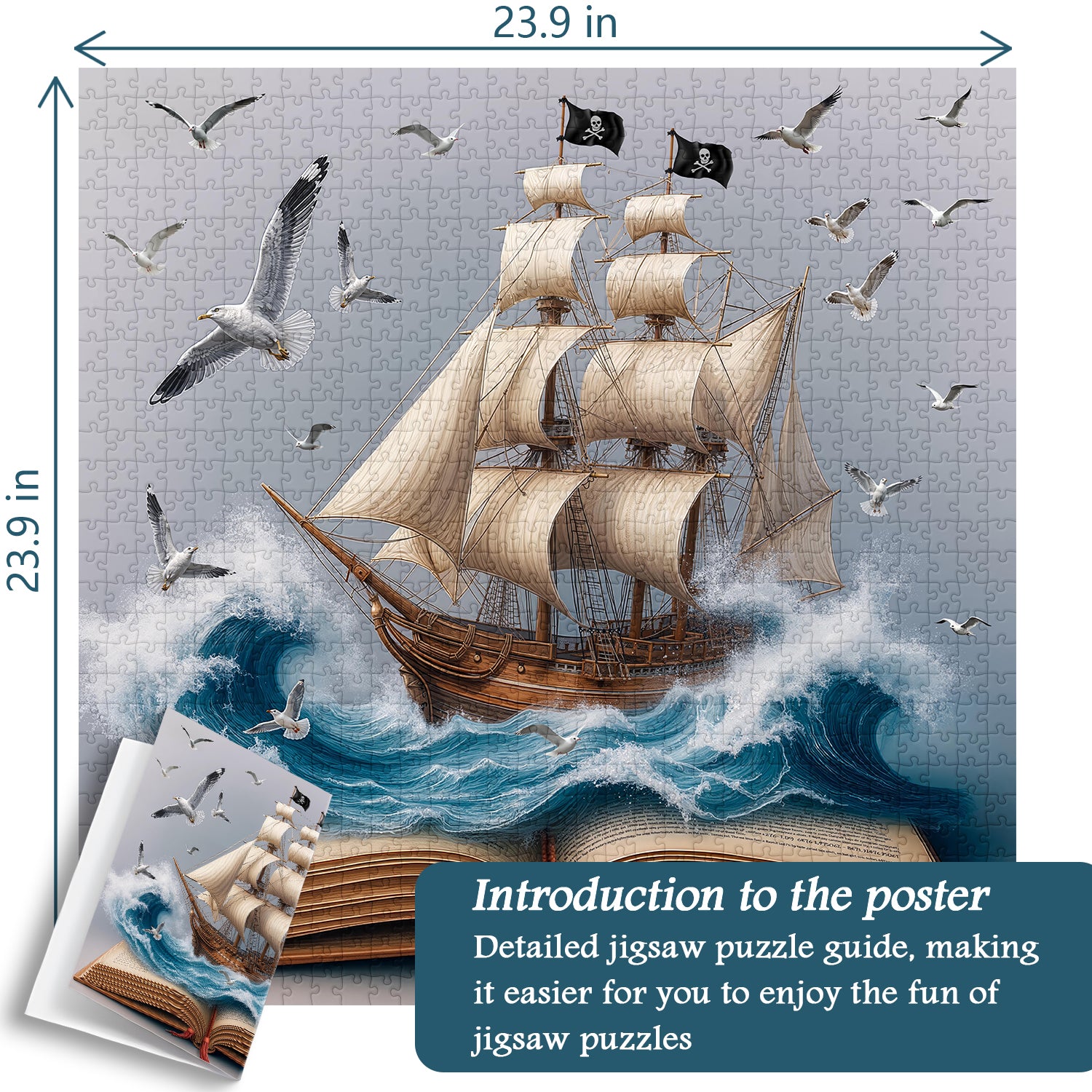 💖【Package Include】23.9*23.9 inches/60.6*60.6 cm (after completion). Sail The Book Sea puzzle 1000 pieces of artwork, comes with an exquisite box and high-resolution poster.