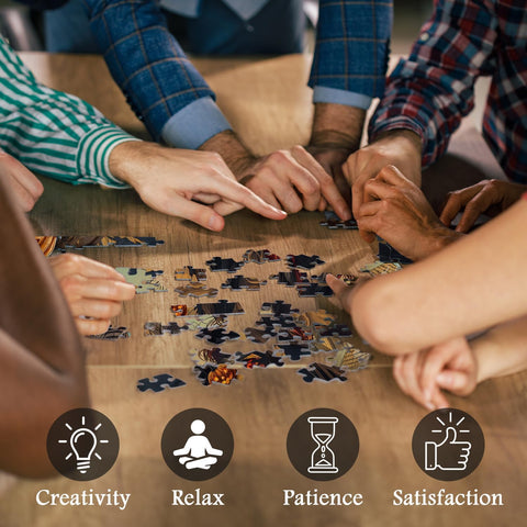HALLOWEEN JIGSAW PUZZLE: Horror puzzles for adults offers both a delightful challenge and a visual feast. Immerse yourself in the meditative joy of organizing each piece and witness the stunning transformation of scattered pieces into works of art. Feel the sense of accomplishment and pride that comes from completing a masterpiece.