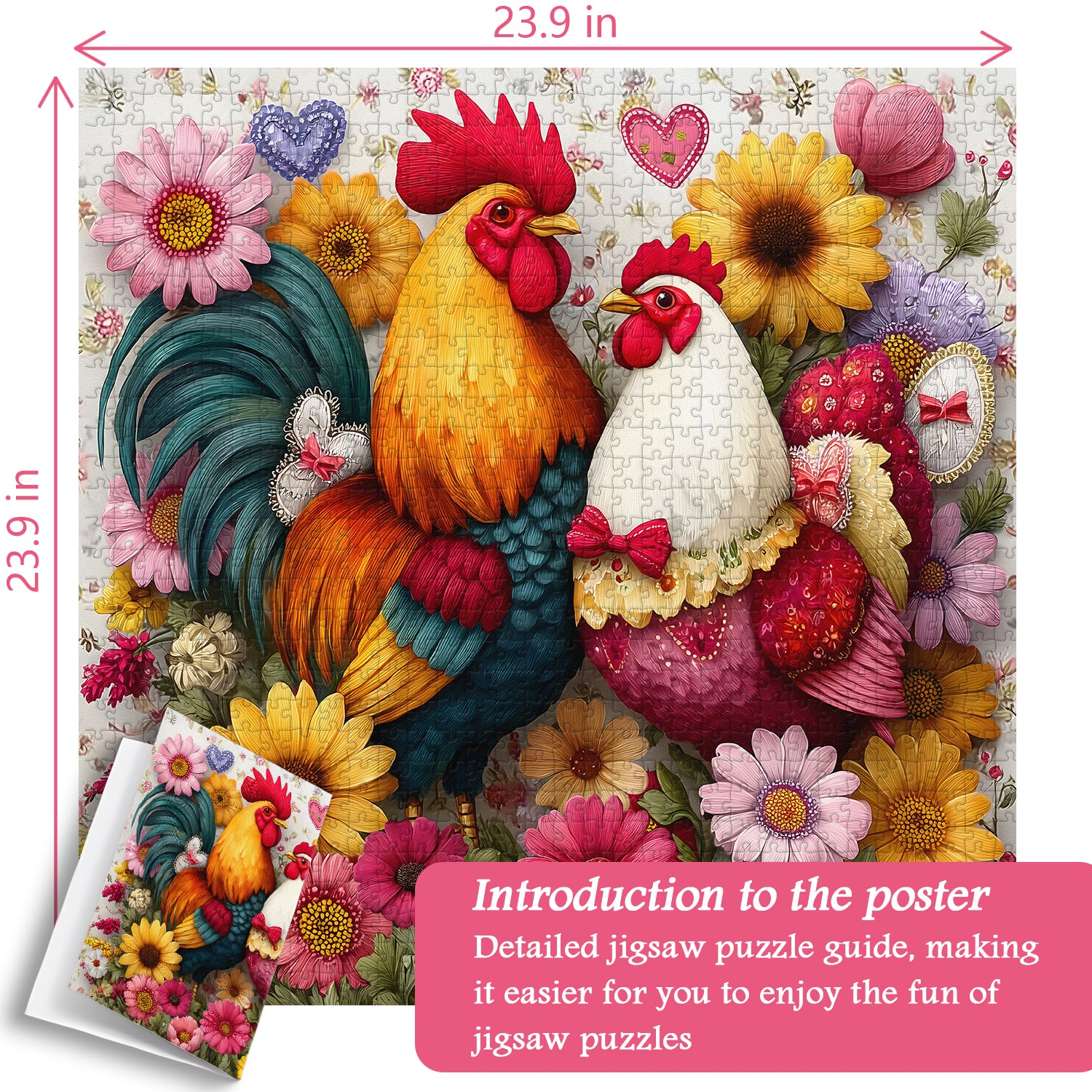 🐤🐔【Sweet Love Chickens】This jigsaw puzzle centers on a pair of brightly colored roosters and hens, surrounded by vibrant flowers, presenting a lively pastoral scene. The rooster and hen's intimate pose conveys harmony and love, evoking the warmth of home and the tranquility of rural life.🌺❤️