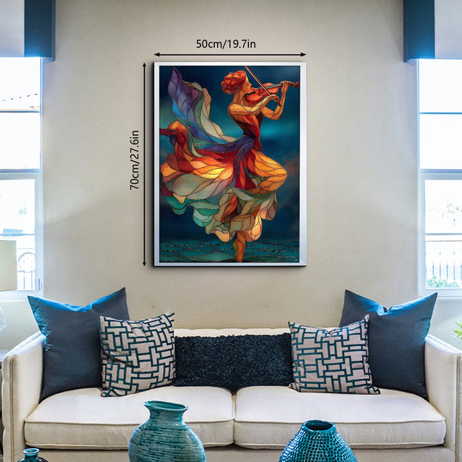 🎻🌈【Violin Goddess】This puzzle centers on an elegant female musician, clad in a flowing dress, holding a violin, seemingly playing a captivating melody on the sea breeze. She stands on the sea, the surrounding waters appearing to dance with her music; each puzzle piece is like a note in a symphony.🎶🌊