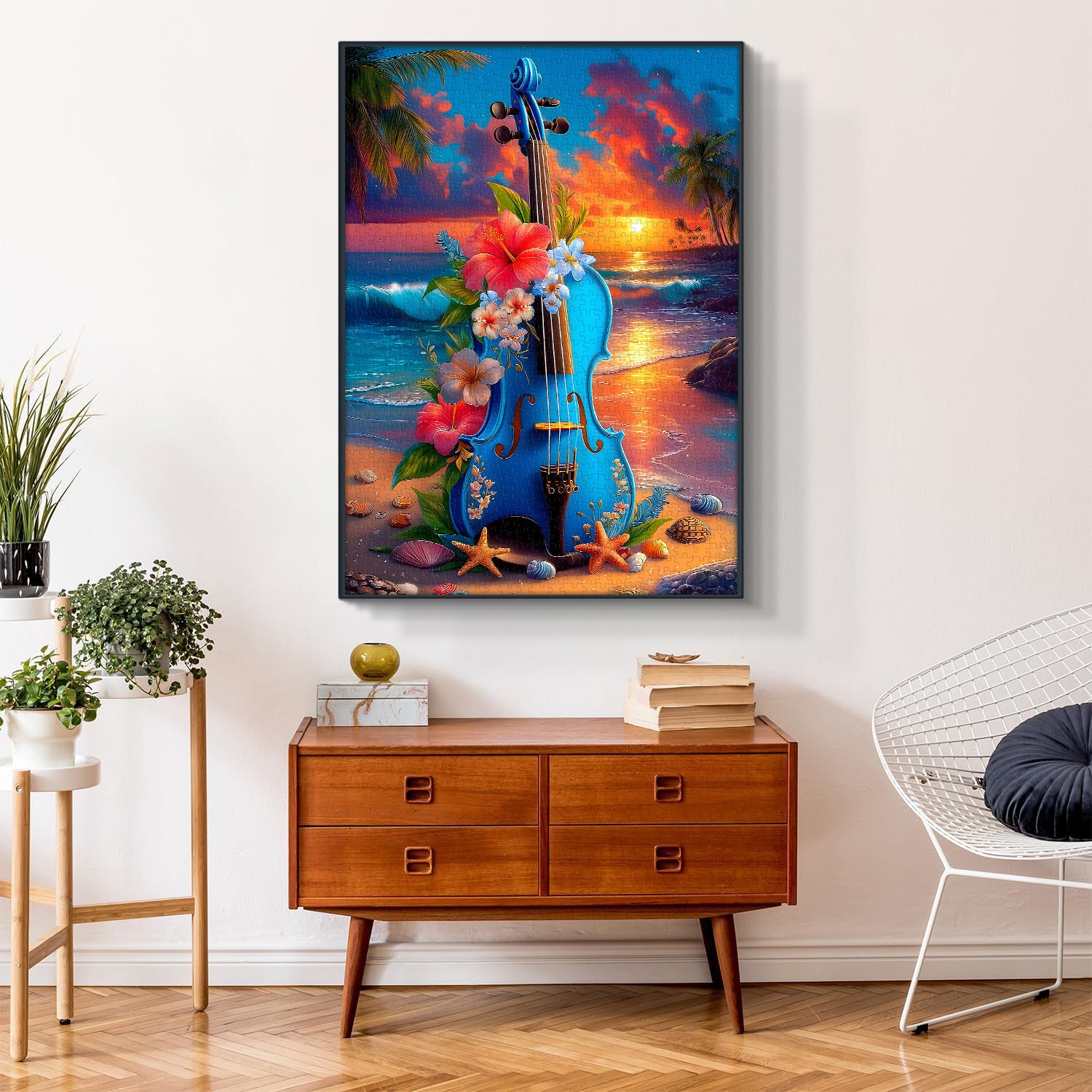 【Floral Violin】The "Floral Violin" puzzle transports you to a tropical beach scene. As the sun sets and waves gently lap, a relaxing and joyful atmosphere is created. A violin adorned with flowers lies quietly on the sand, seemingly telling a story about music and nature.