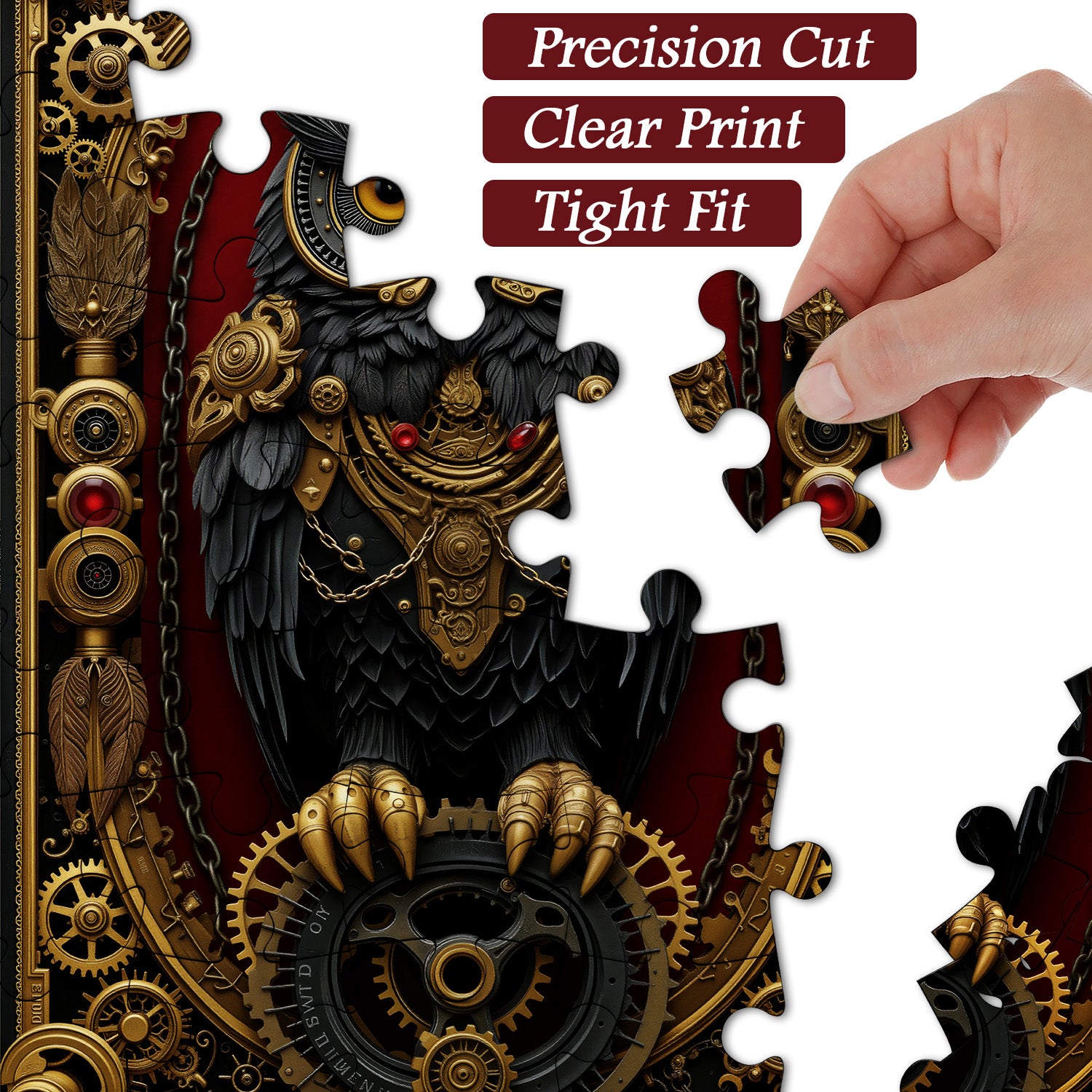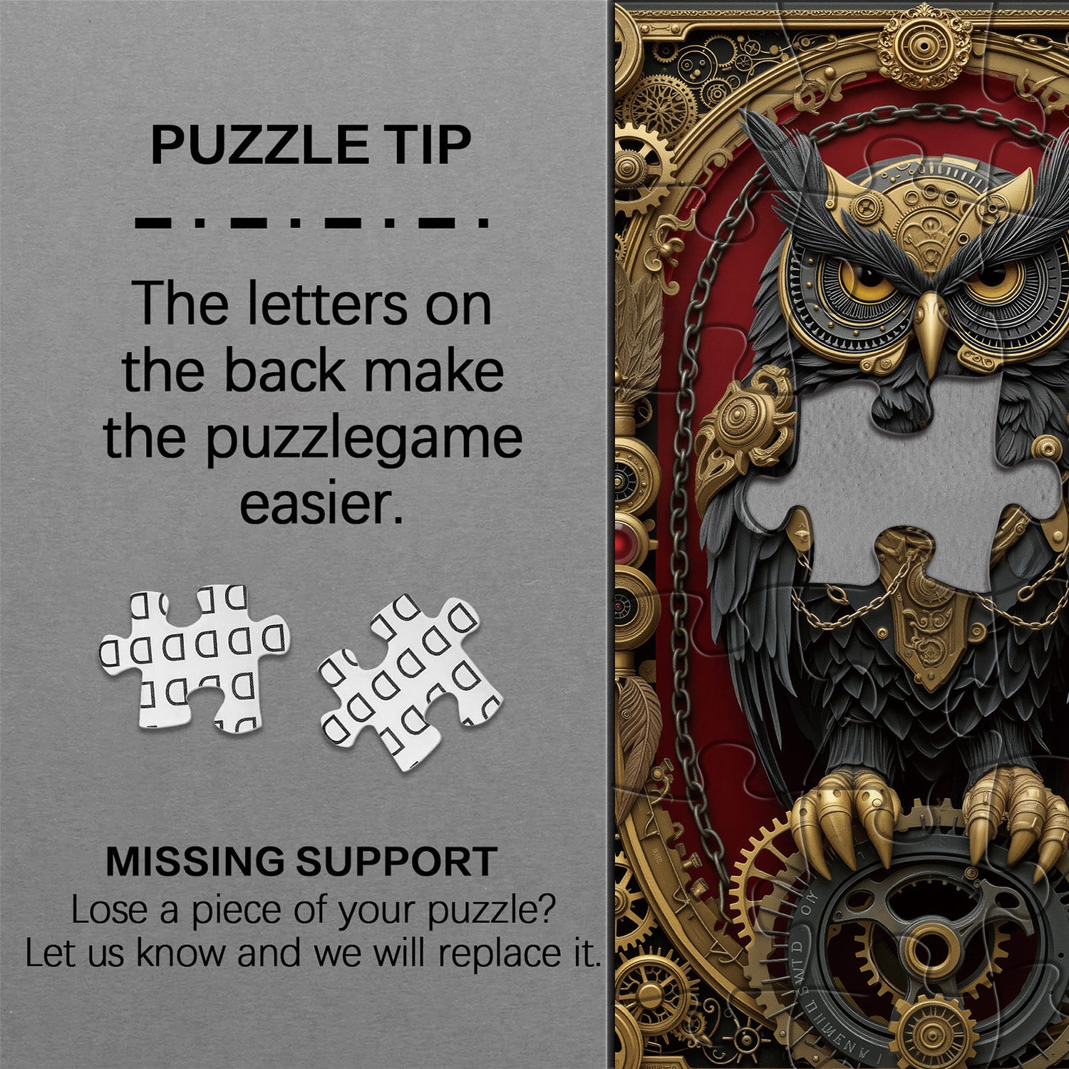 🦉⚙️【 Mechanical OwlThis puzzle centers on a dark owl clad in mechanical armor. Its eyes are intricate gear dials, its feathers are layered like metallic scales, its chest is inlaid with rubies and brass chains, and its claws grip a massive gear. The overall composition resembles a sealed steampunk mechanical fortress, brimming with industrial and mysterious tension.😎💖