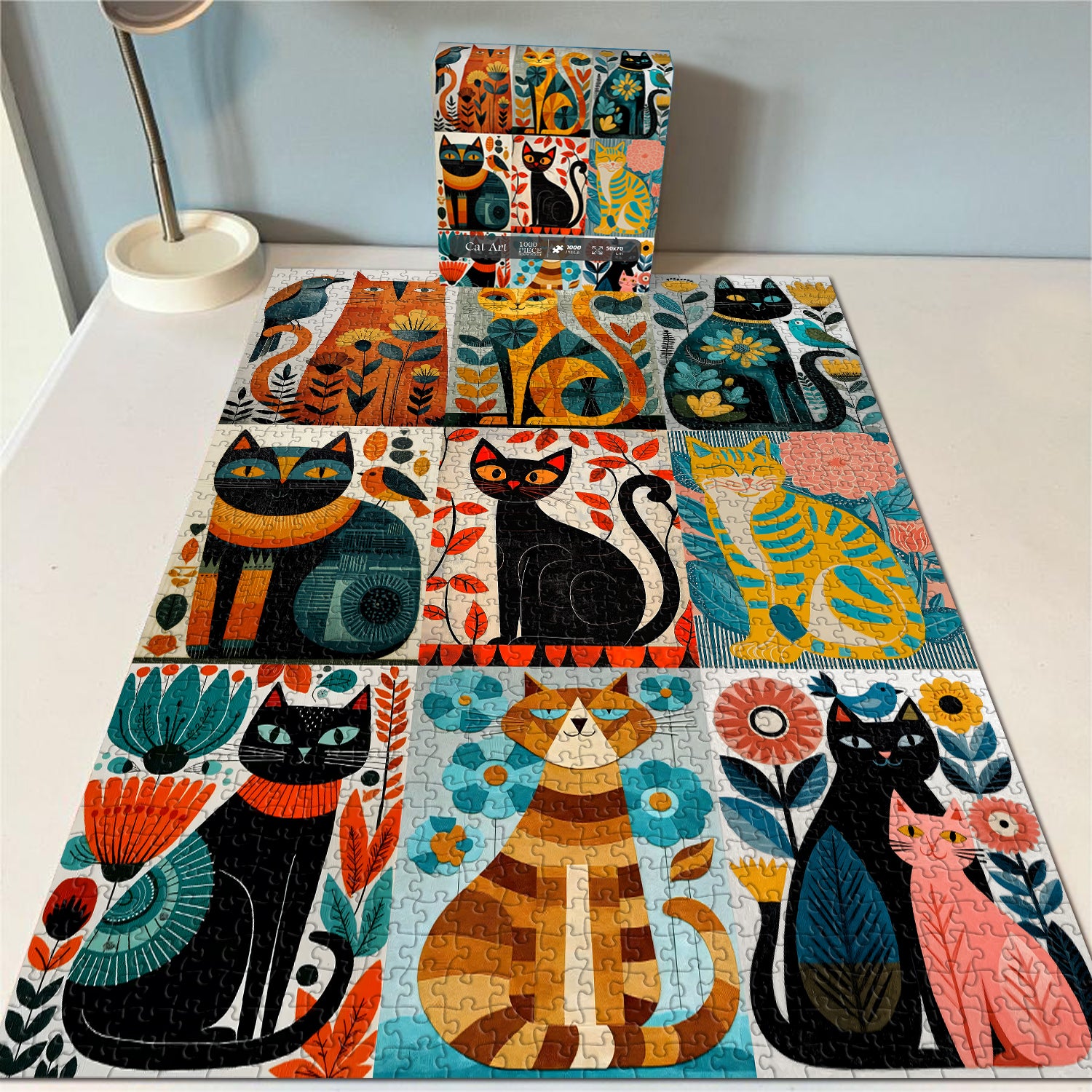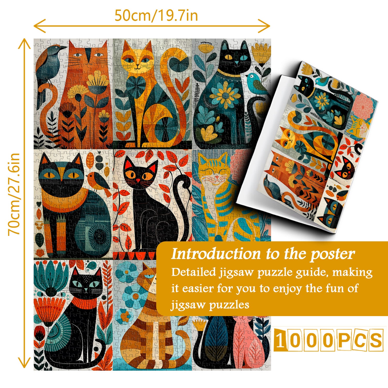 🖼️【Verpackung und Abmessungen: Dieses 1.000-teilige Cat Art-Puzzle misst 19,7 x 27,6 Zoll. Einmal gerahmt wird es zu einer „mobilen Kunstausstellung“, die Ihr Wohnzimmer fesseln wird! Enthält ein hochauflösendes Referenzplakat zur Zoneneinteilung, sodass auch Anfänger jedes „künstlerische Highlight“ genau erkennen können