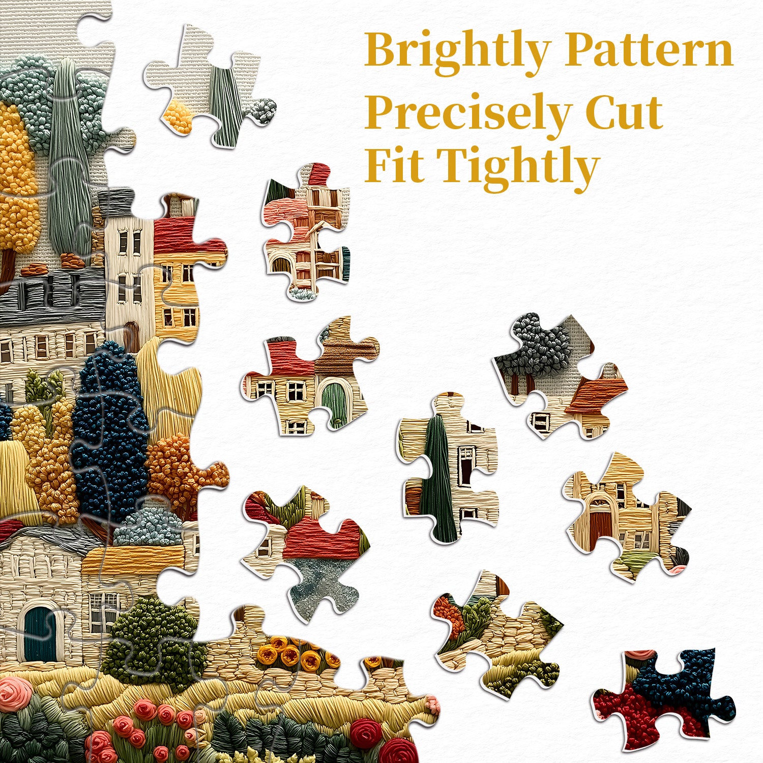 🌞【Exquisite Workmenship】Embroidery Village puzzle are made of 100% recycled thickened cardboard, vividly printed with organic inks, high-quality puzzles, precise cutting, each piece fits tightly, and the splicing process is smooth and fluent.