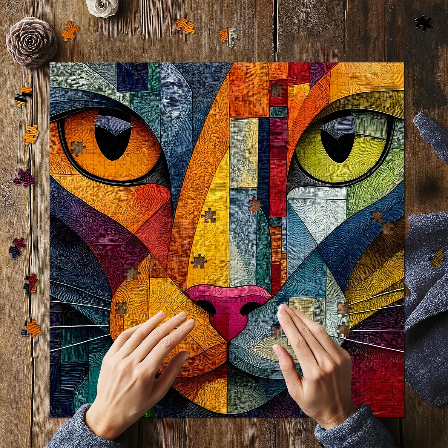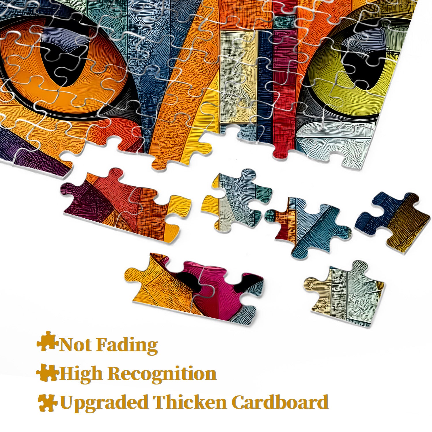 🐱🌈Geometrisches KätzchenDieses Puzzle präsentiert einen abstrakten Kunststil, der die traditionelle Ästhetik herausfordert und grenzenlose Fantasie anregt. Der starke Farbkontrast und die kräftige Farbblockkombination des Katzengesichts verleihen dem Puzzle Vitalität und Dynamik.✨
