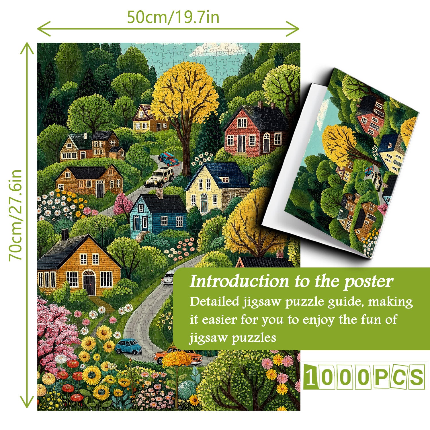 đłđĄăLebendige LandschaftăDas Puzzle fĂ€ngt die Lebendigkeit des FrĂŒhlings ein und zeigt eine lebendige Gemeinschaftsszene. HĂ€user in verschiedenen Farben sĂ€umen die verschlungenen Wege, jedes mit seinem ganz eigenen Charakter. Umgeben von blĂŒhenden Blumen und grĂŒnen BĂ€umen, von den Schornsteinen auf den DĂ€chern bis zu den Autos am StraĂenrand entsteht eine harmonische AtmosphĂ€re.âš