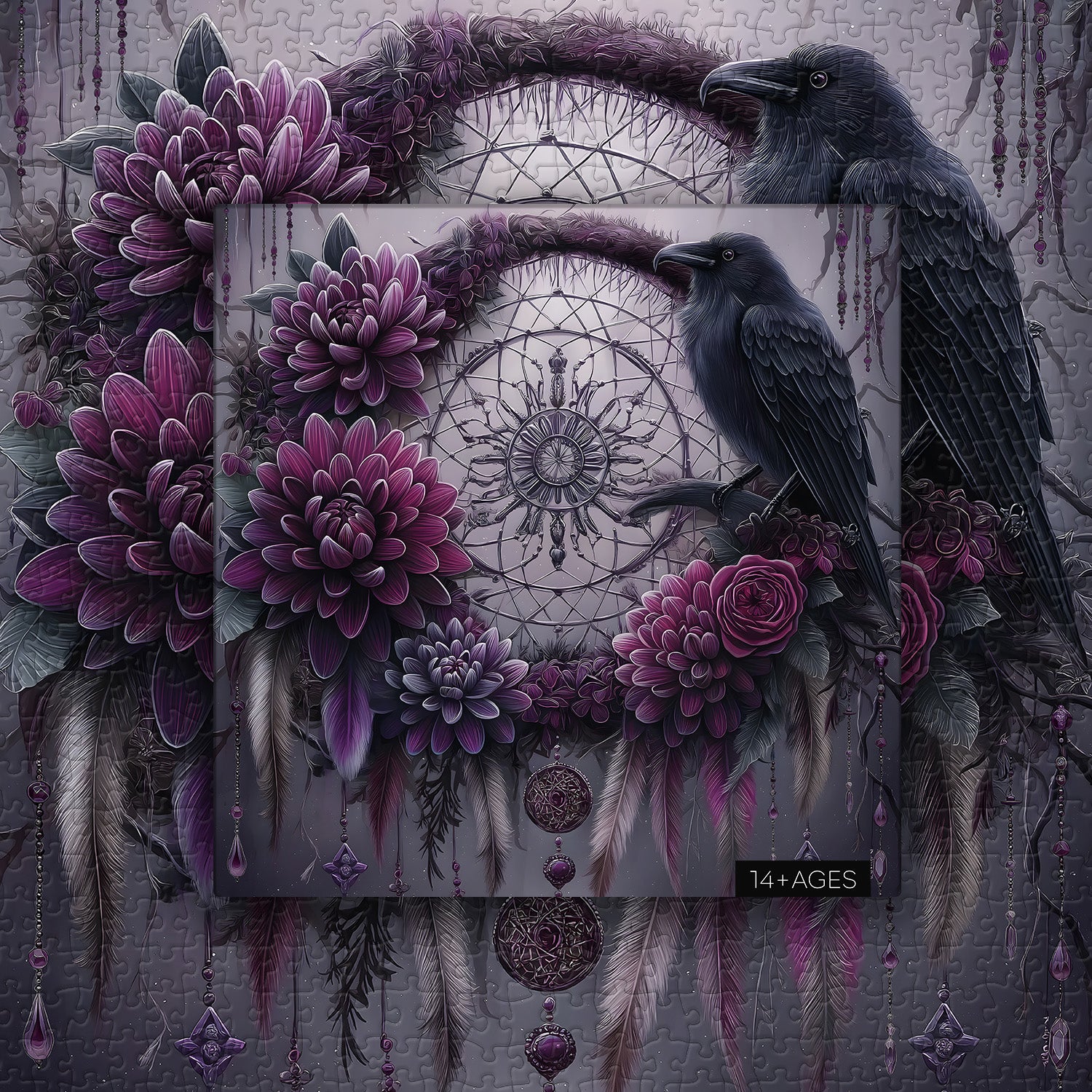 🐦🌺【Dream Feather】A crow quietly guards the dreamcatcher, as if a guardian of dreams, a mysterious and majestic presence. The dreamcatcher's exquisite details symbolize capturing beautiful dreams, filtering out nightmares, and bringing peace and tranquility.🔮🖼️