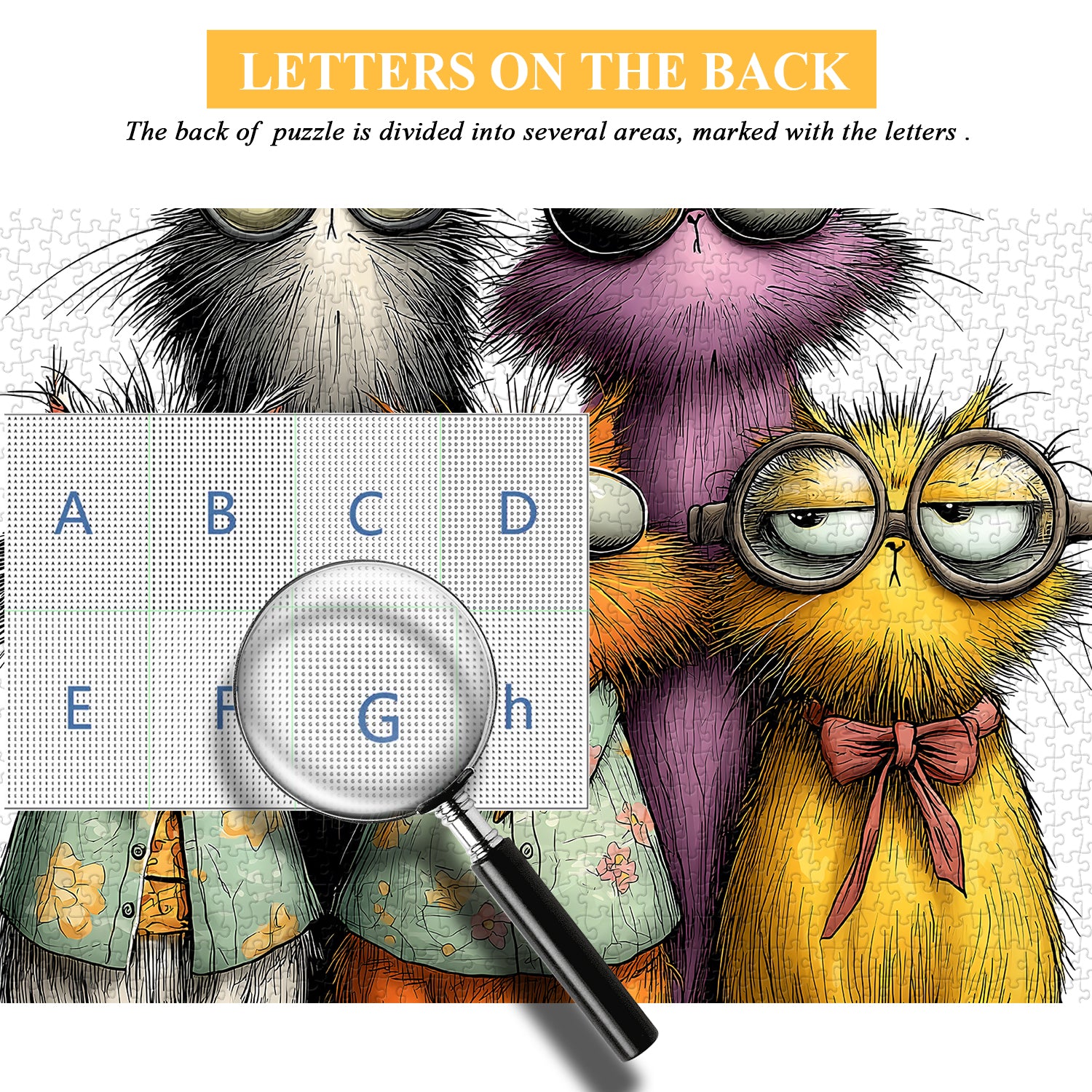 🐱🕶️Package Included: High-definition colorful jigsaw puzzle 1000 pieces, jigsaw reference book and sturdy box.🐾