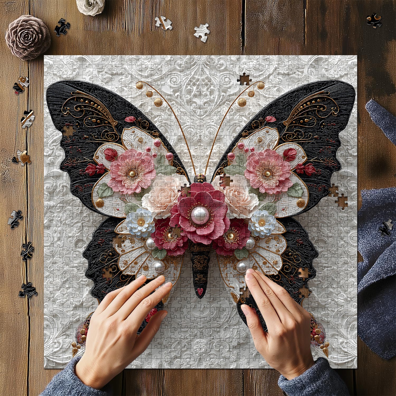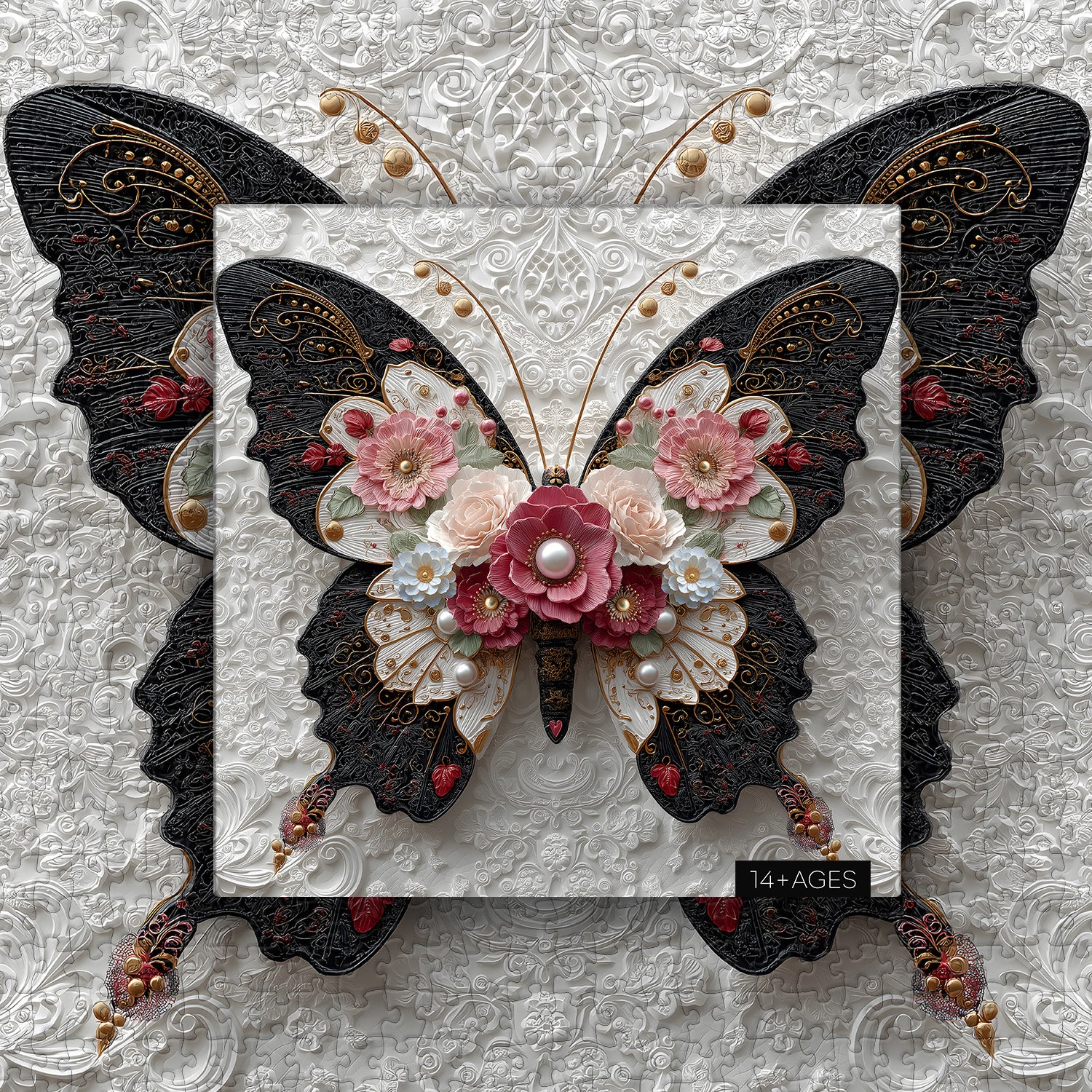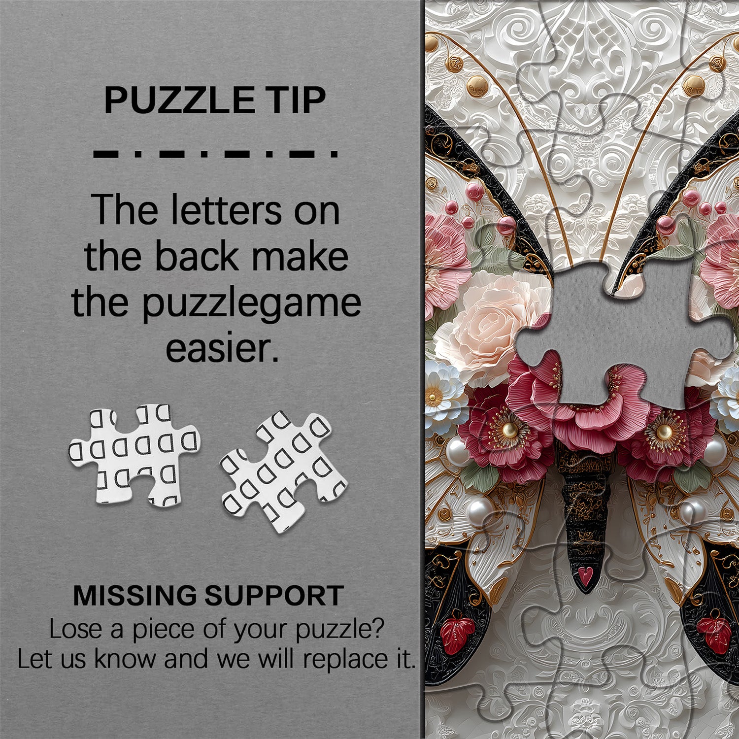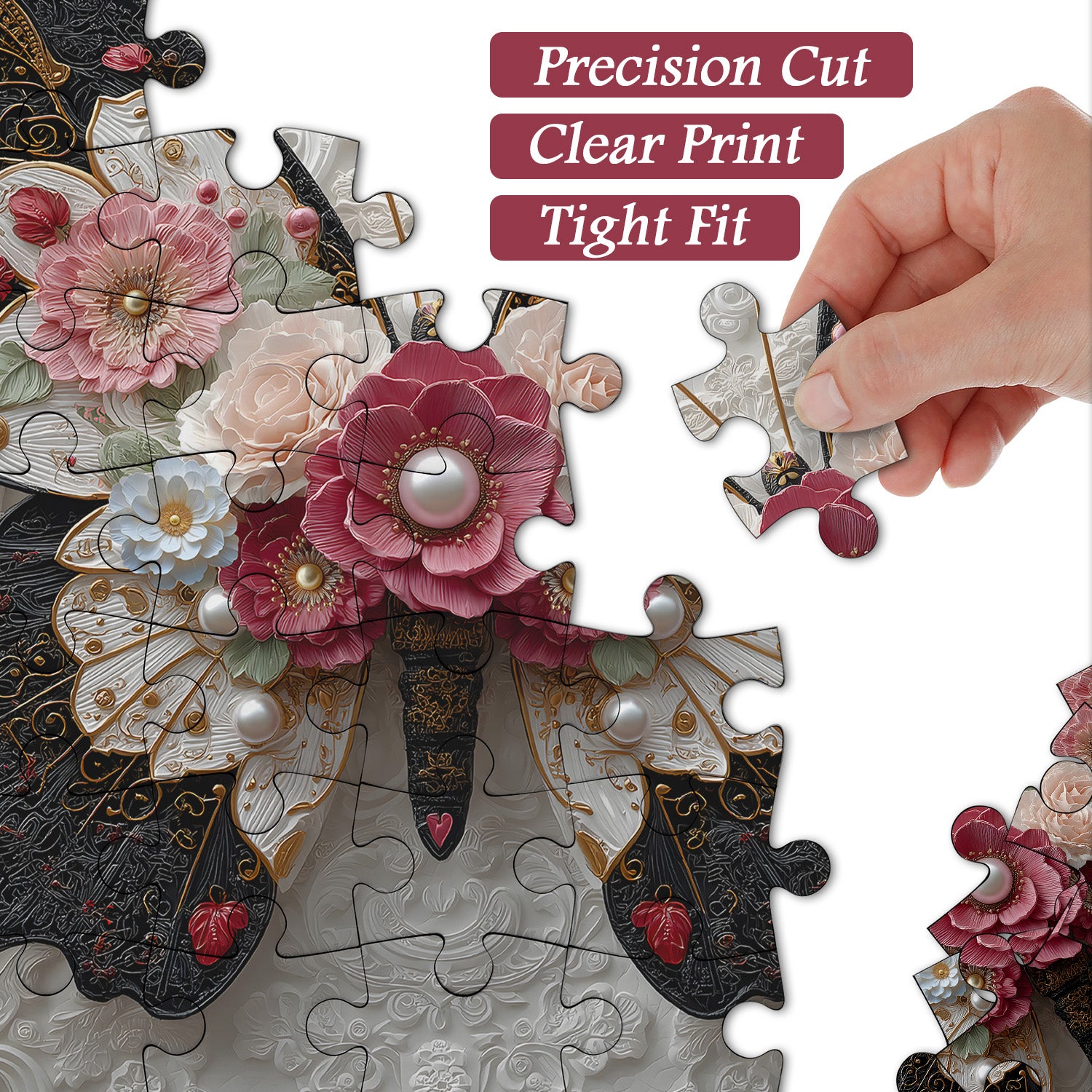 🦋🌺Alas florales:Este rompecabezas presenta una magnífica mariposa, con sus alas adornadas con delicados e intrincados patrones, aparentemente lista para volar. Las alas de la mariposa están decoradas con exquisitas flores y perlas tridimensionales; cada flor es realista y cada perla brilla con brillo.