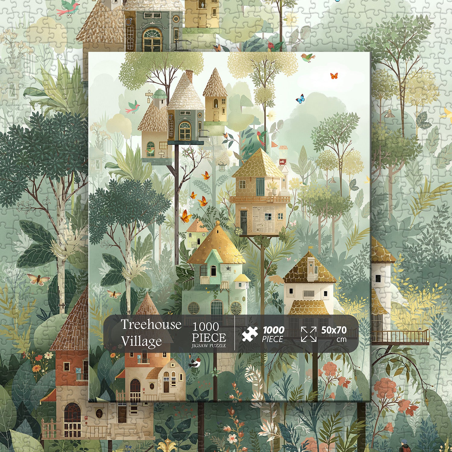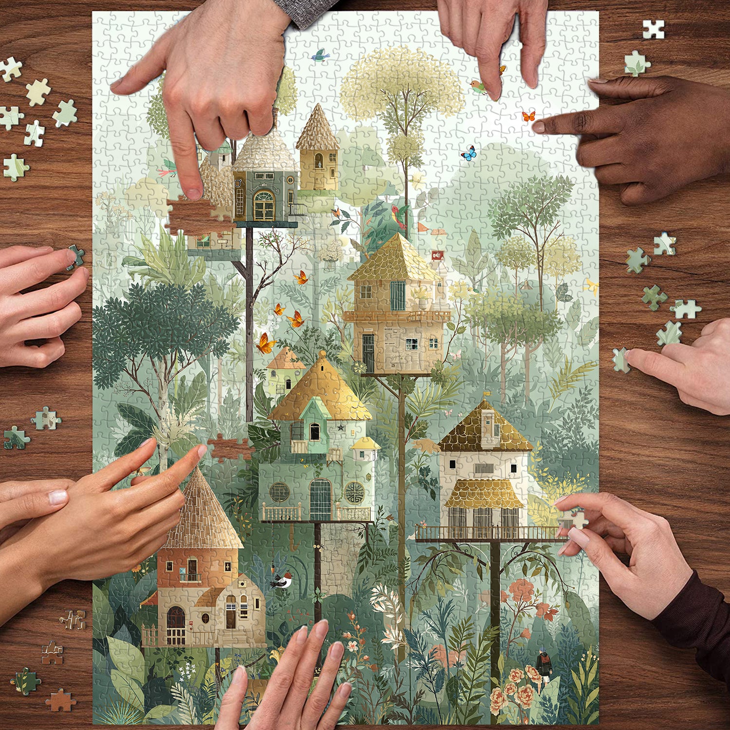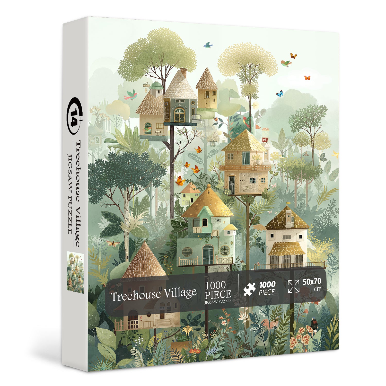 Rompecabezas de la aldea de la casa del árbol, 1000 piezas