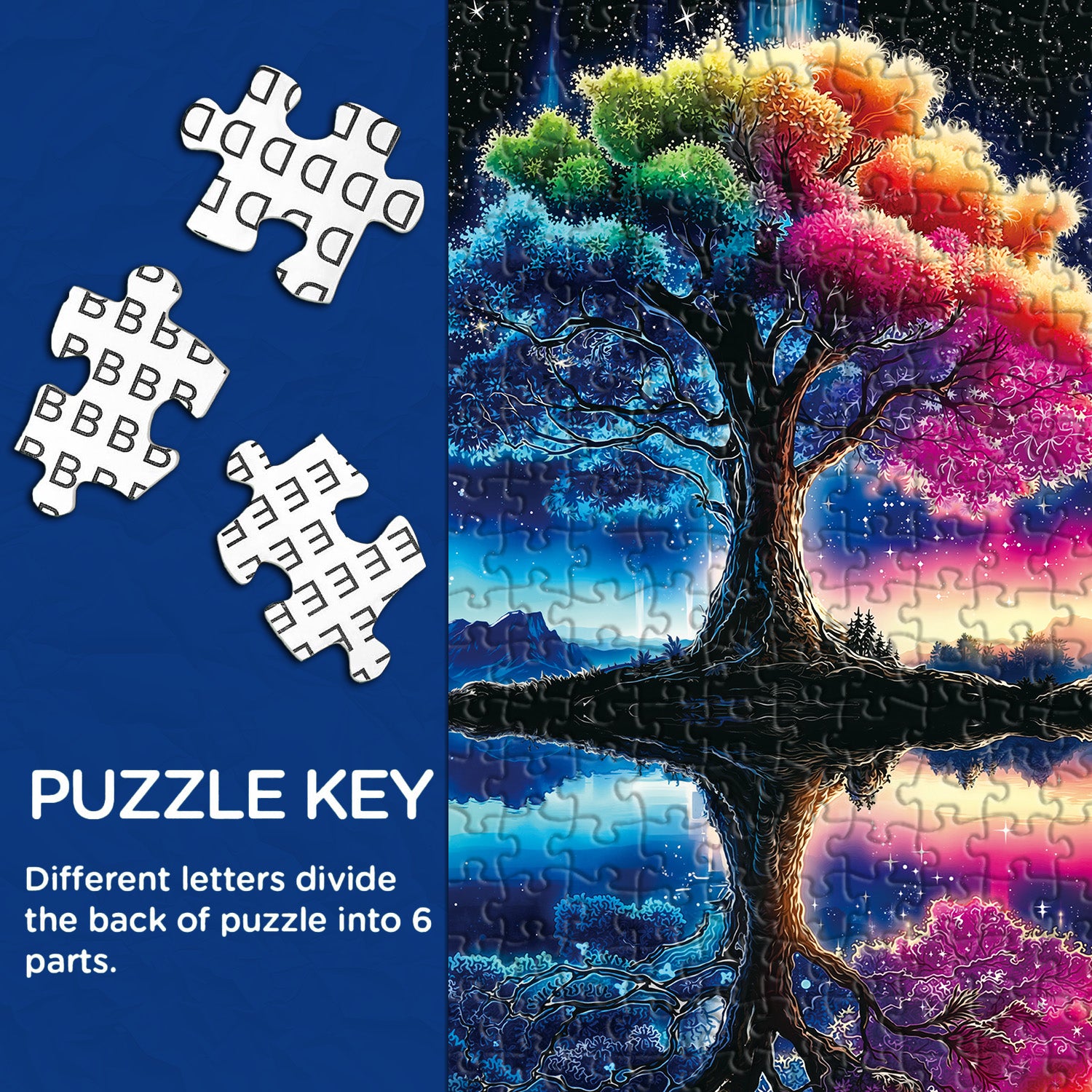 🌳🌈【Ternelle étoilée】Ce puzzle est centré sur un arbre magique, dont les feuilles affichent le vert du printemps, le rouge de l'été, le jaune de l'automne et le bleu de l'hiver, une représentation vivante des changements de saisons. Les arbres, les fleurs et l’eau créent ensemble un poème sur la nature, vous donnant l’impression d’être immergé dans le cycle des saisons.🖼️🌿