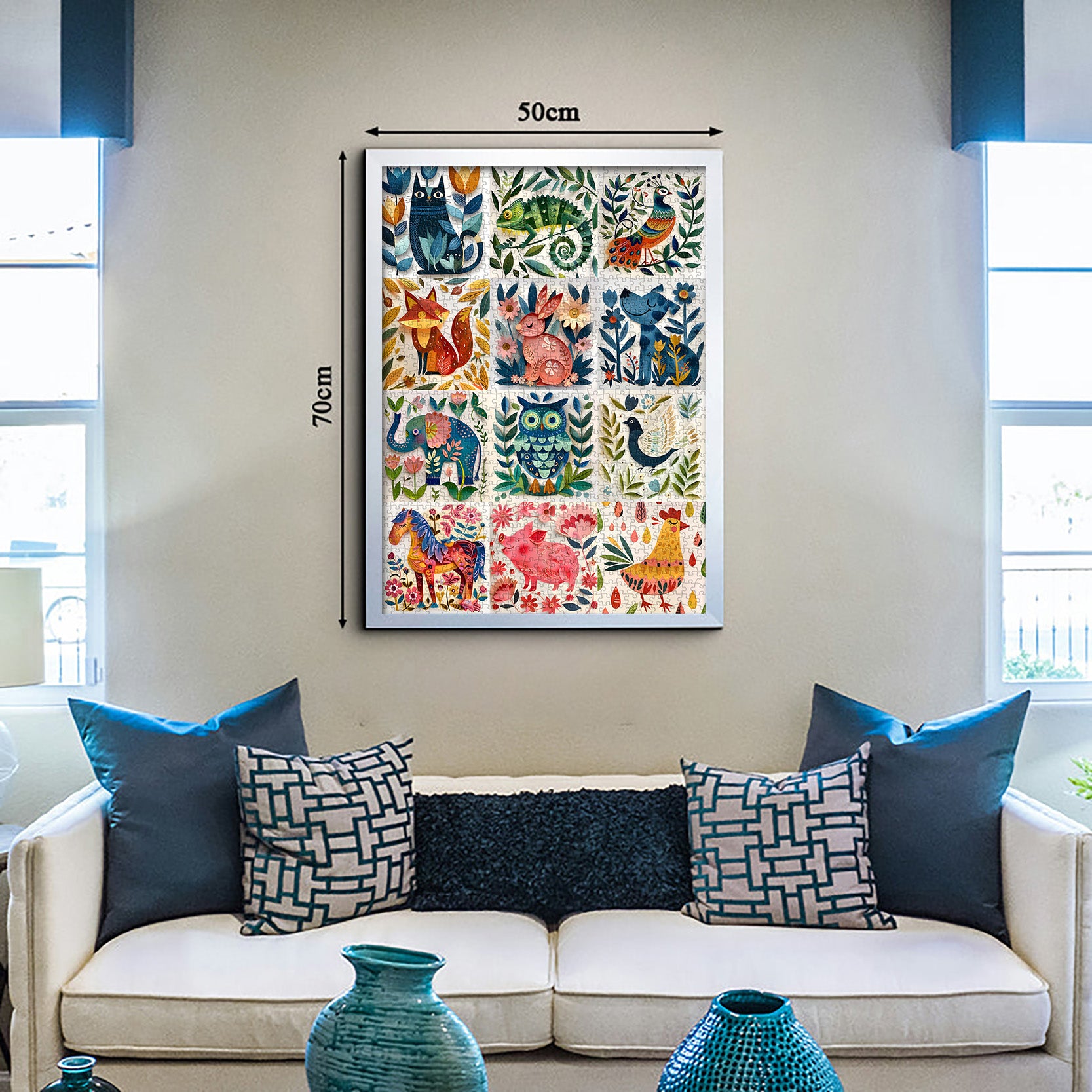 🐱🐾【Créatures peintes】Ce puzzle représente une fête animée d'animaux de la forêt, chaque animal débordant d'énergie et de joie. Les animaux et les plantes du puzzle sont rendus dans des couleurs vives, mettant en vedette une variété de créatures, notamment des hiboux, des renards, des lapins, des paons et des grenouilles, chacune avec sa propre posture et expression.🐦🌺