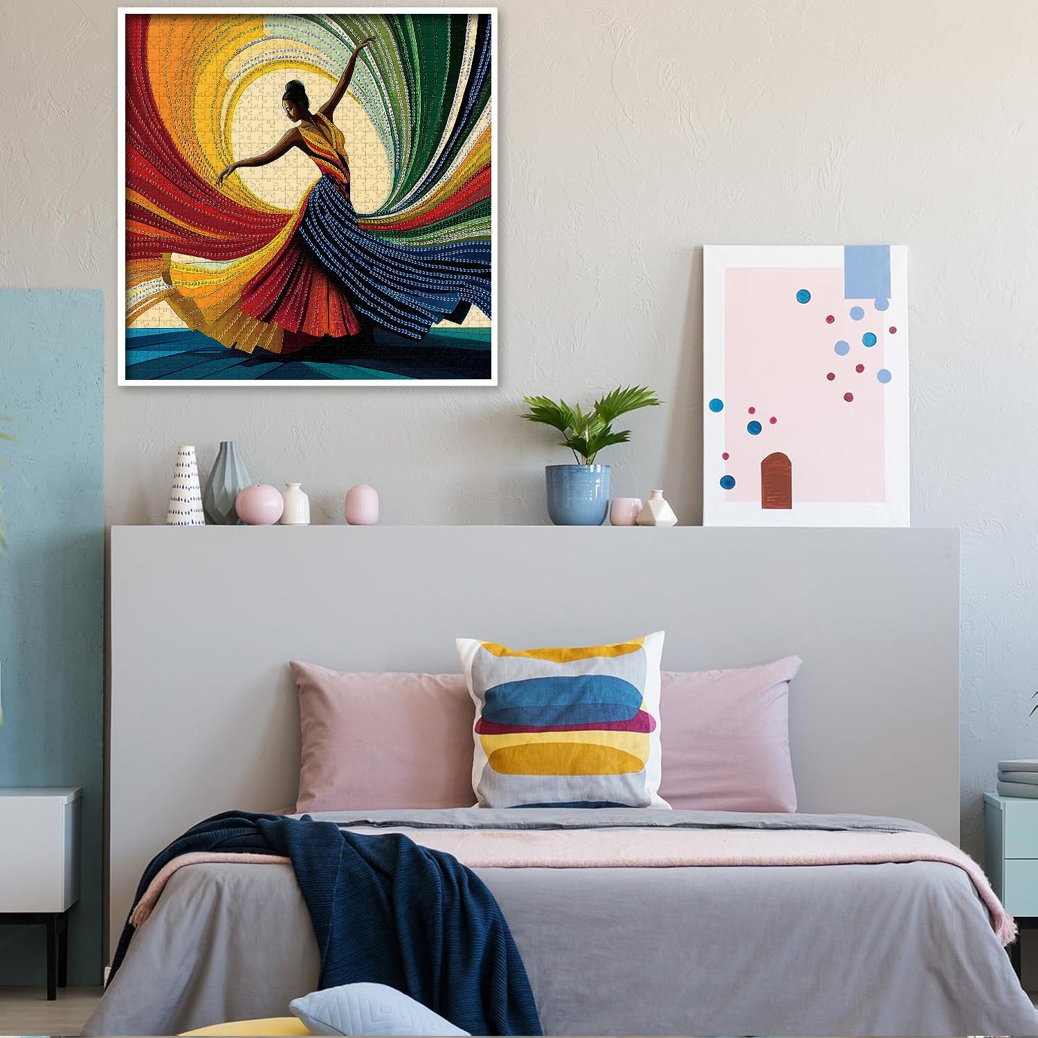 💃🌈【Ballerino dinamico】Questo puzzle raffigura una ballerina che gira in una gonna a forma di arcobaleno, ogni movimento pieno di ritmo ed energia. La gonna del ballerino ricorda un arcobaleno fluente, composto da sette colori: rosso, arancione, giallo, verde, blu, indaco e viola, ciascuno vibrante e accattivante.🎨🌟