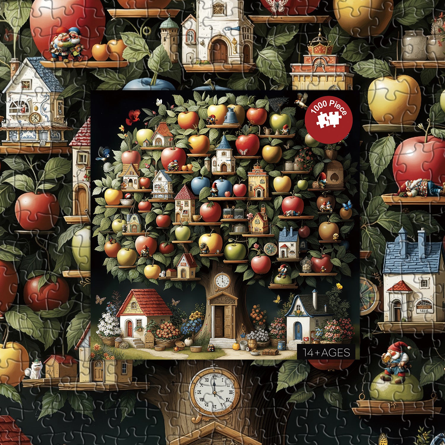 Ritiro Apple di Dwarf :Vuoi immergerti in una fiaba curativa tra gli alberi? Questo puzzle porta il mondo magico di "Magic + Treehouse Romance" proprio ai tuoi occhi. Le mele rosse brillano come piccoli soli, le case minuscole sono abbastanza squisite da ospitare gli elfi, l'orologio tick come una storia della buona notte e persino l'aria è piena della dolce fragranza di Forest Dew.