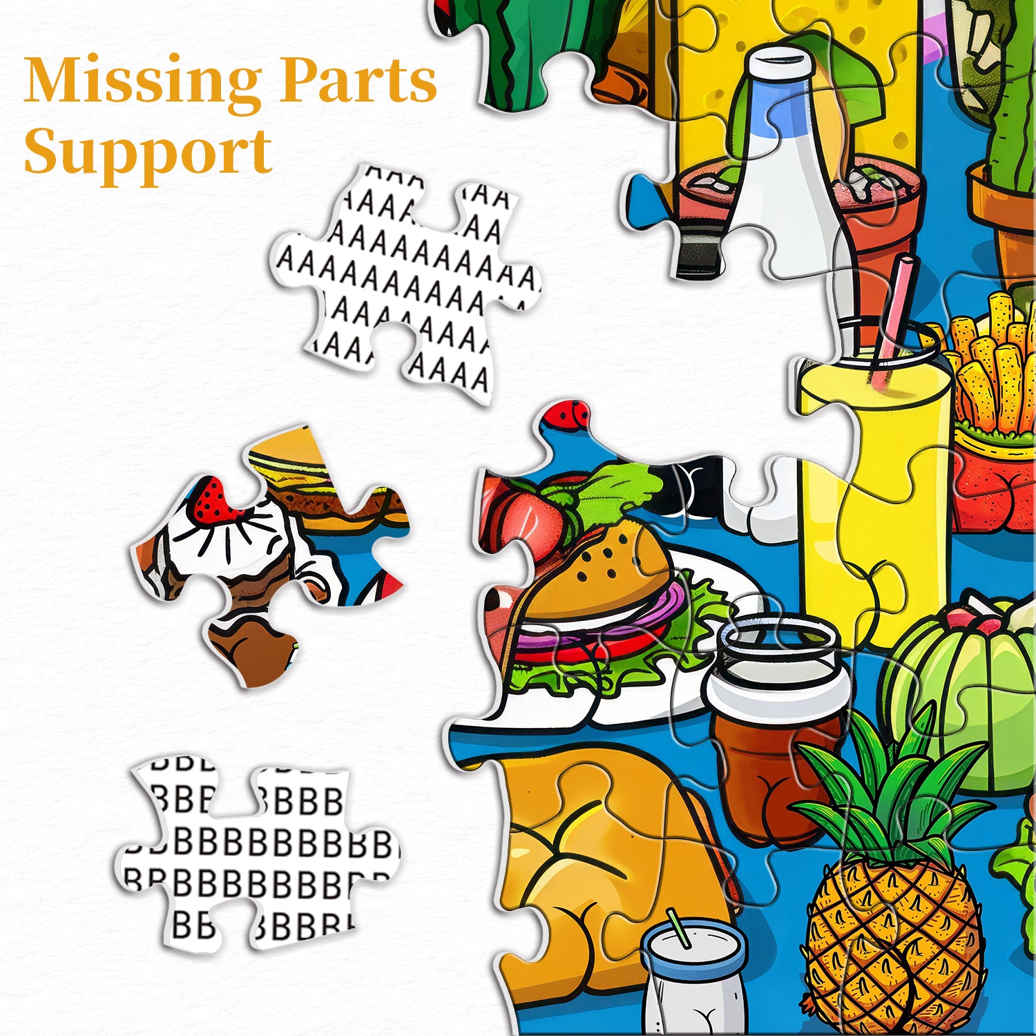 Chow sfacciato: Questo puzzle usa i "mozziconi" di varie prelibatezze come punto creativo, presentando prelibatezze classiche come hamburger, hot dog e pollo fritto in modo umoristico, permettendo alle persone di godersi una doppia festa della visione e del gusto mentre si risolvono il puzzle. Questa prospettiva unica aggiunge un senso di giocosità e novità a prelibatezze comuni.