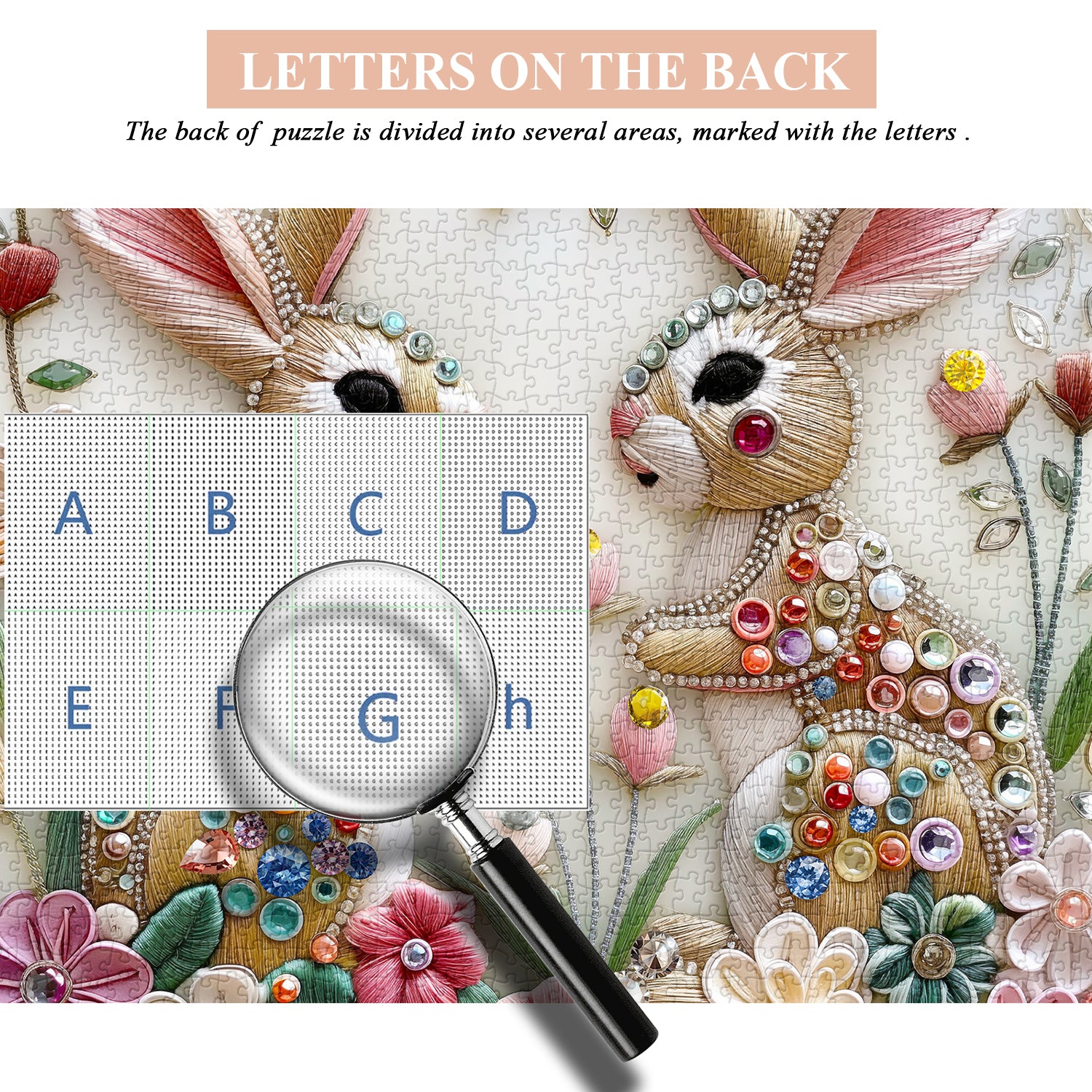 🐇Diamond Bunny: La combinazione perfetta di gioielli e ricami, il puzzle raffigura un coniglio decorato con splendidi gioielli come il centro e ogni puzzle sembra essere intarsiato con gemme abbaglianti, che brilla di luce affascinante. Ti porterà in un mondo artistico squisito e lussuoso, permettendoti di sperimentare una straordinaria creatività e il divertimento estetico nel mettere insieme! 🧩❤️