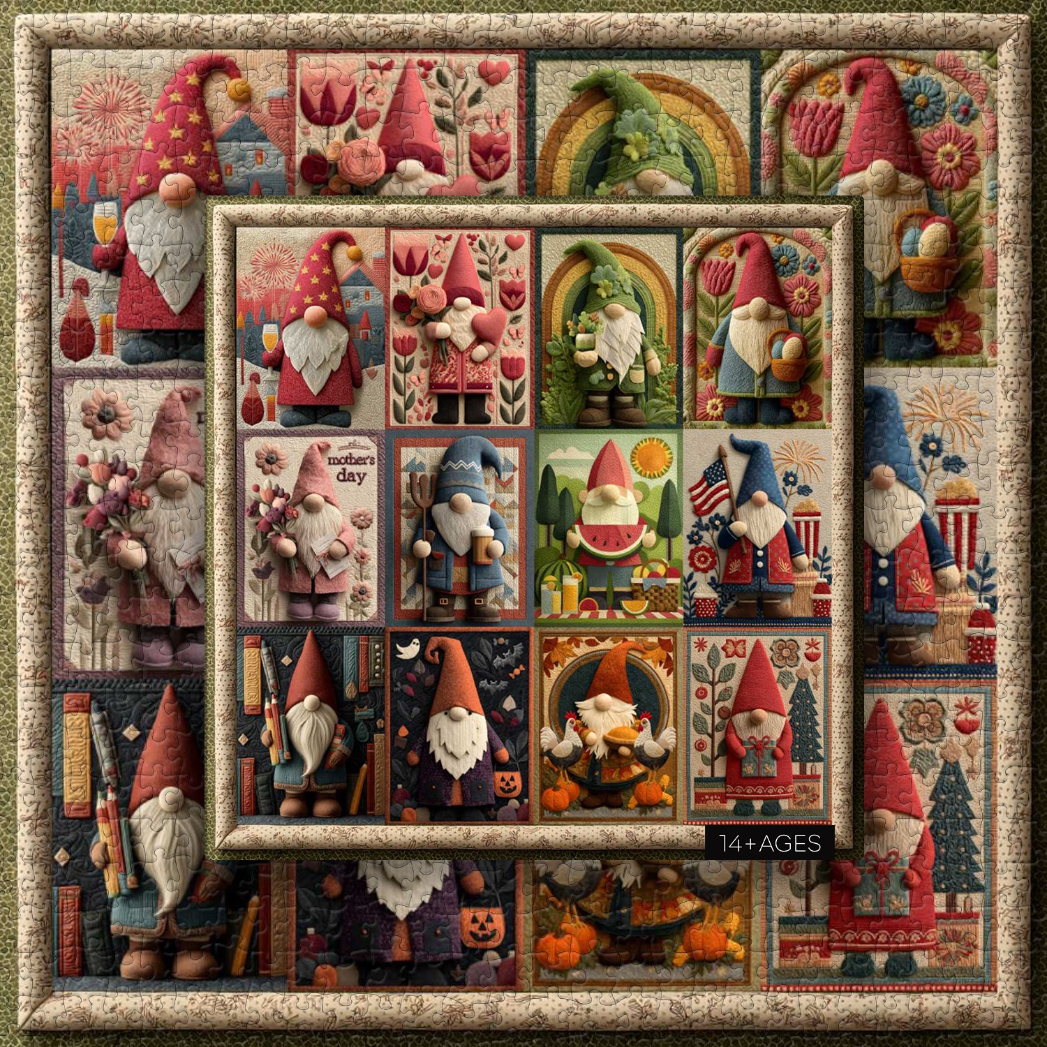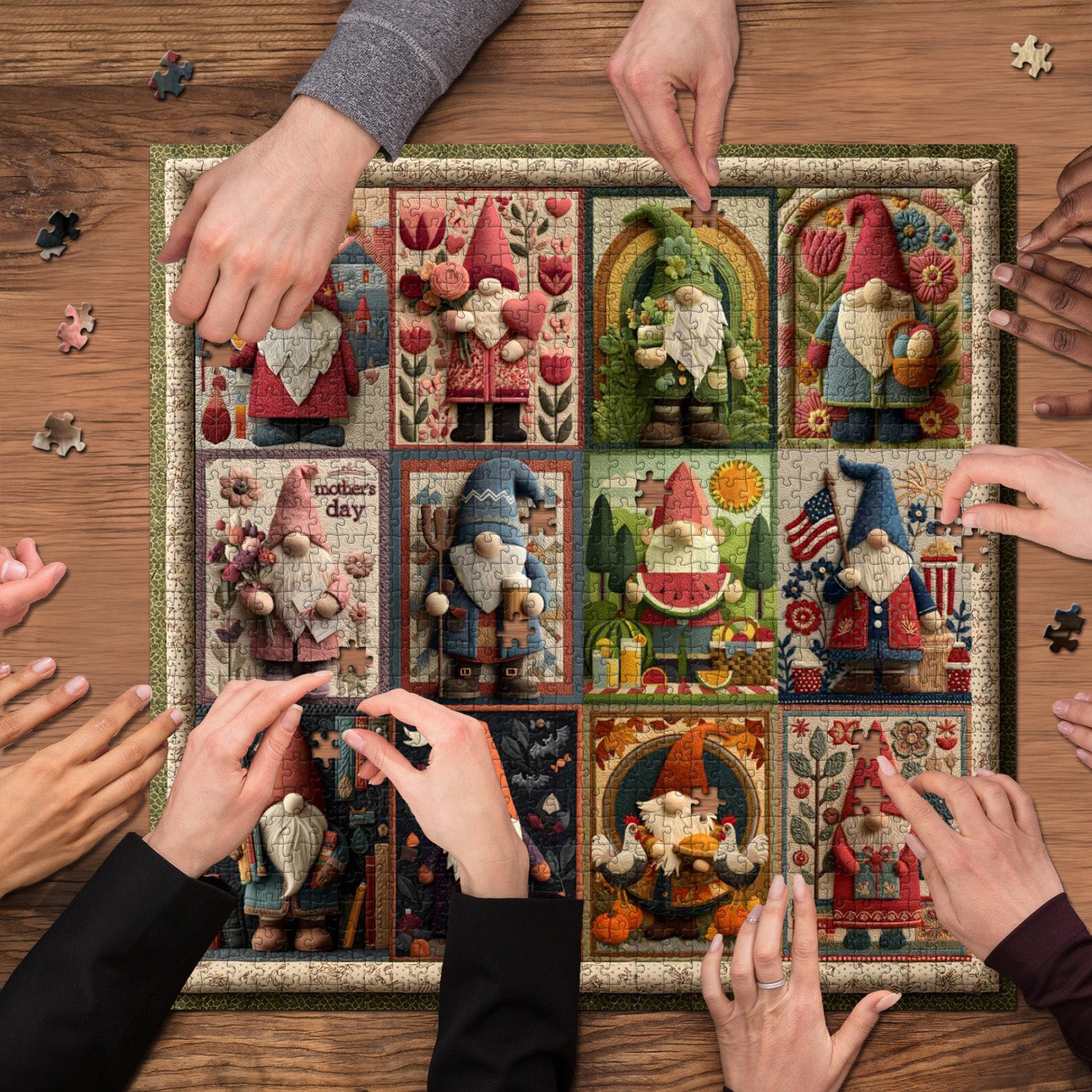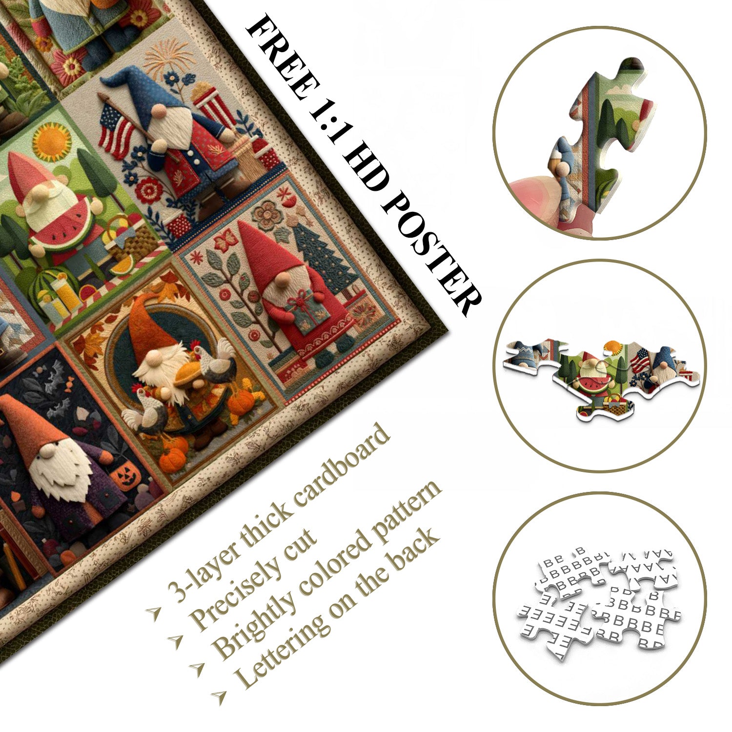 1 * Gnome Holidays Quilt Jigsaw Puzzle 1000 Pieces