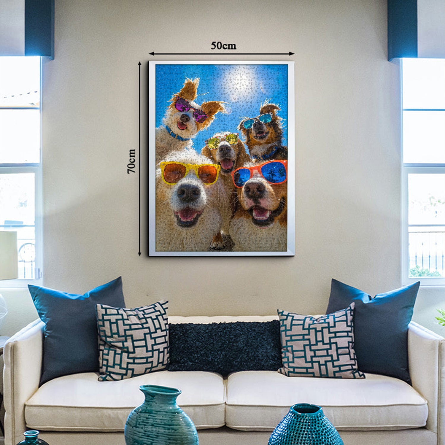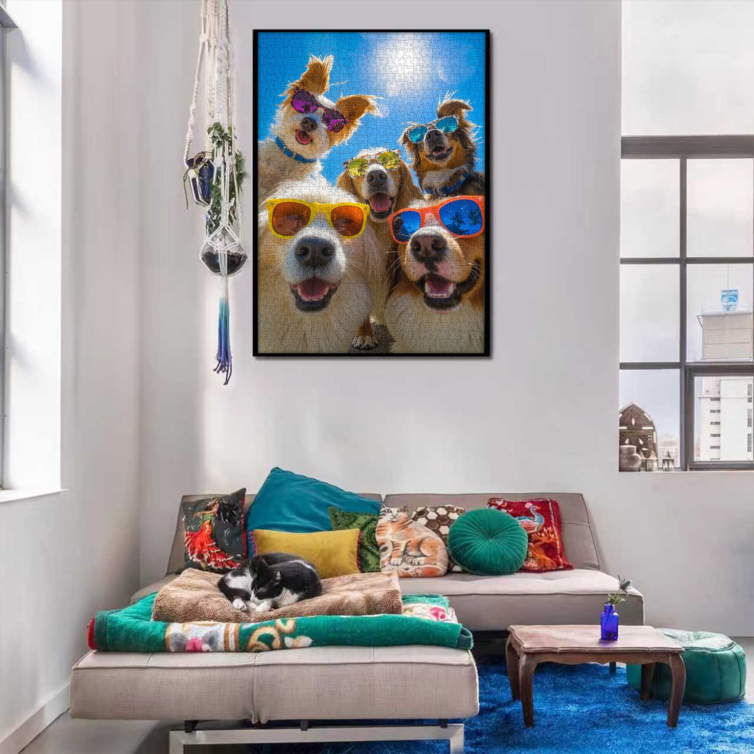 🐶🕶️【Sunglasses Dog ParadiseThis puzzle captures a group of dogs wearing cool sunglasses enjoying the sunshine. Each dog has a smiling face and is full of energy. Each dog's expression is lifelike; some are sticking out their tongues, some are squinting, as if enjoying the coolness of summer.☀️🌈