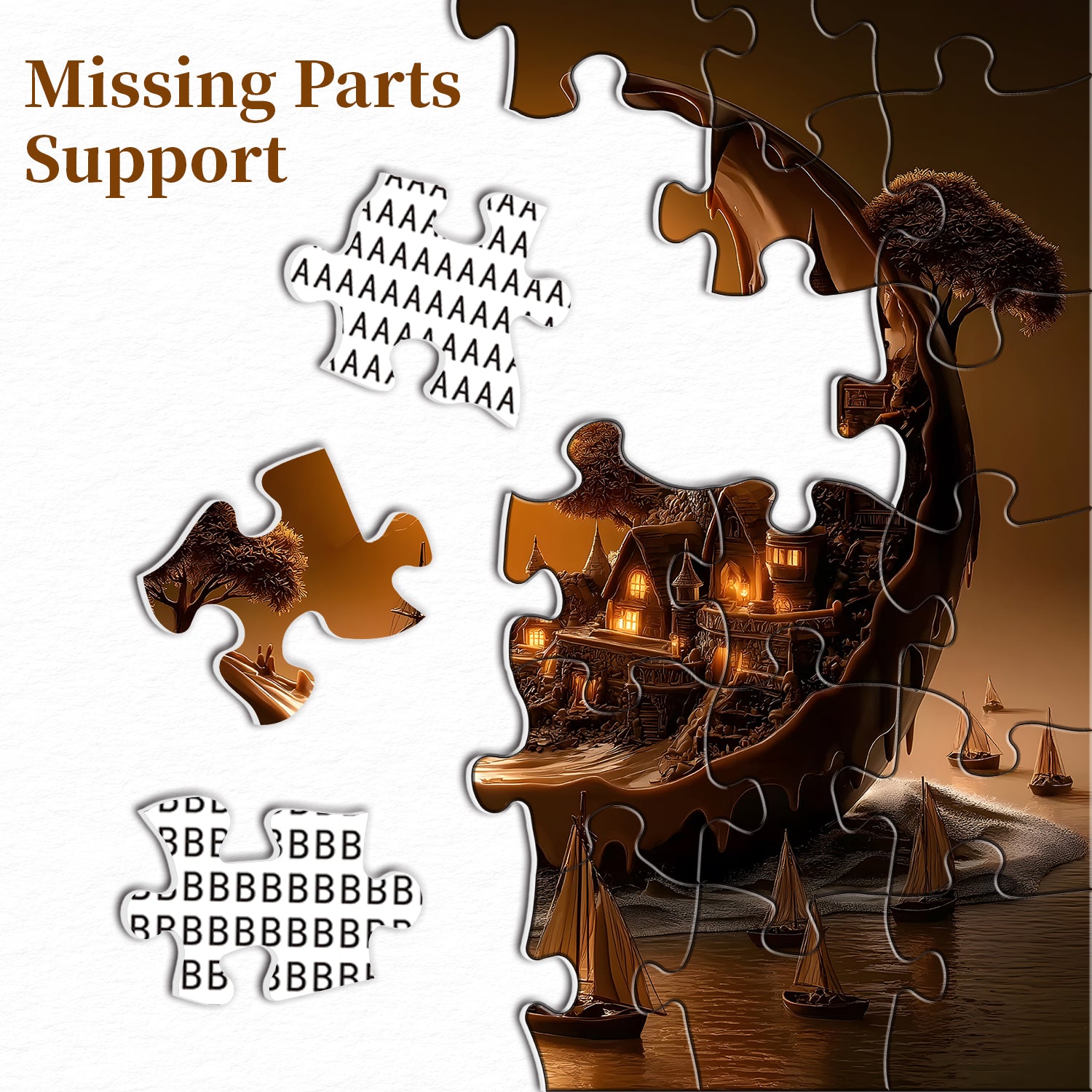 🌙🏝️ 【paradiso illuminato da luna Puzzle】: Questo puzzle è incentrato su una fantastica isola alla deriva, dove un castello appare misterioso e accattivante al chiaro di luna. Le luci del castello brillano calorosamente e brillantemente alla luce della luna, in attesa di esploratori. Strani alberi crescono sull'isola, le loro radici scavano in profondità nell'acqua, aggiungendo un tocco di fantasia.🏠