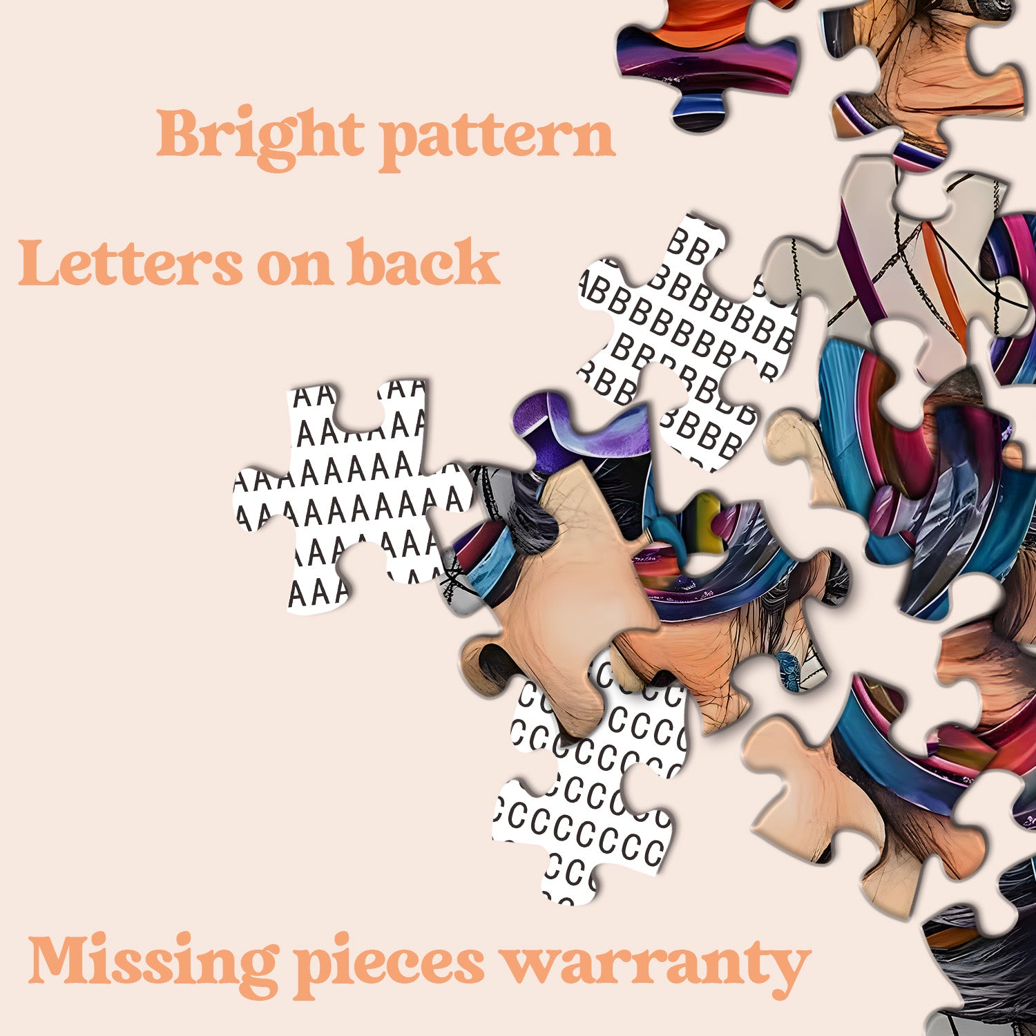 👵🌼【Colorful Years : This puzzle depicts a vibrant grandma wearing a colorful flower wreath and glasses, showcasing a timeless sense of style. Her smile and eyes convey optimism and contentment, reminding us of the beauty of life.🎨