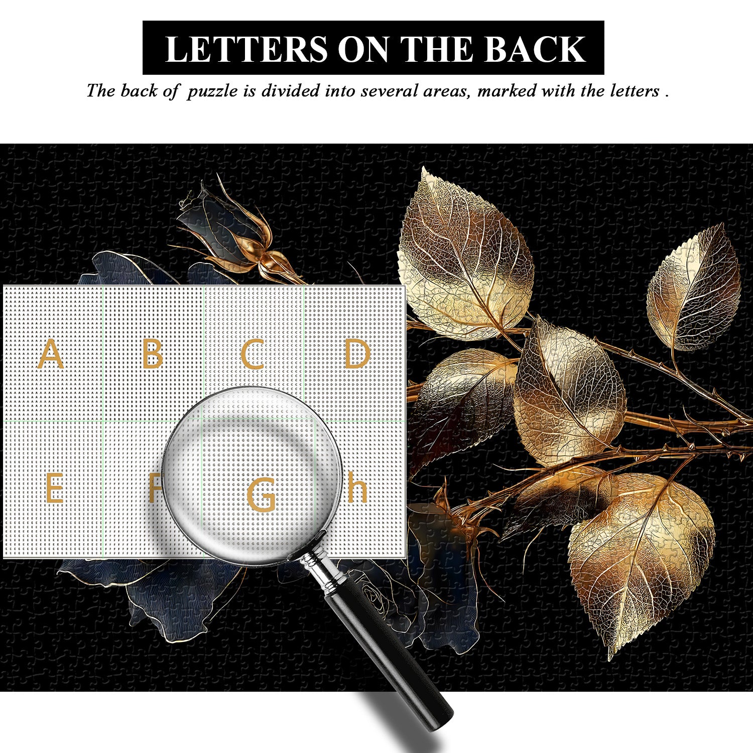 🧩【Exquisite Workmenship】Black Gold Rose puzzle are made of 100% recycled thickened cardboard, vividly printed with organic inks, high-quality puzzles, precise cutting, each piece fits tightly, and the splicing process is smooth and fluent.🌹🎨