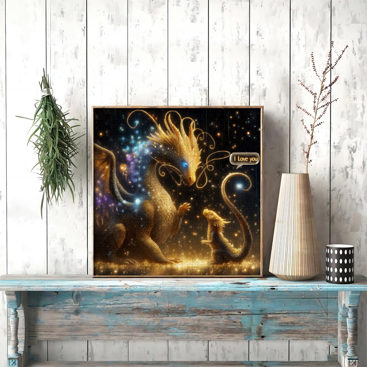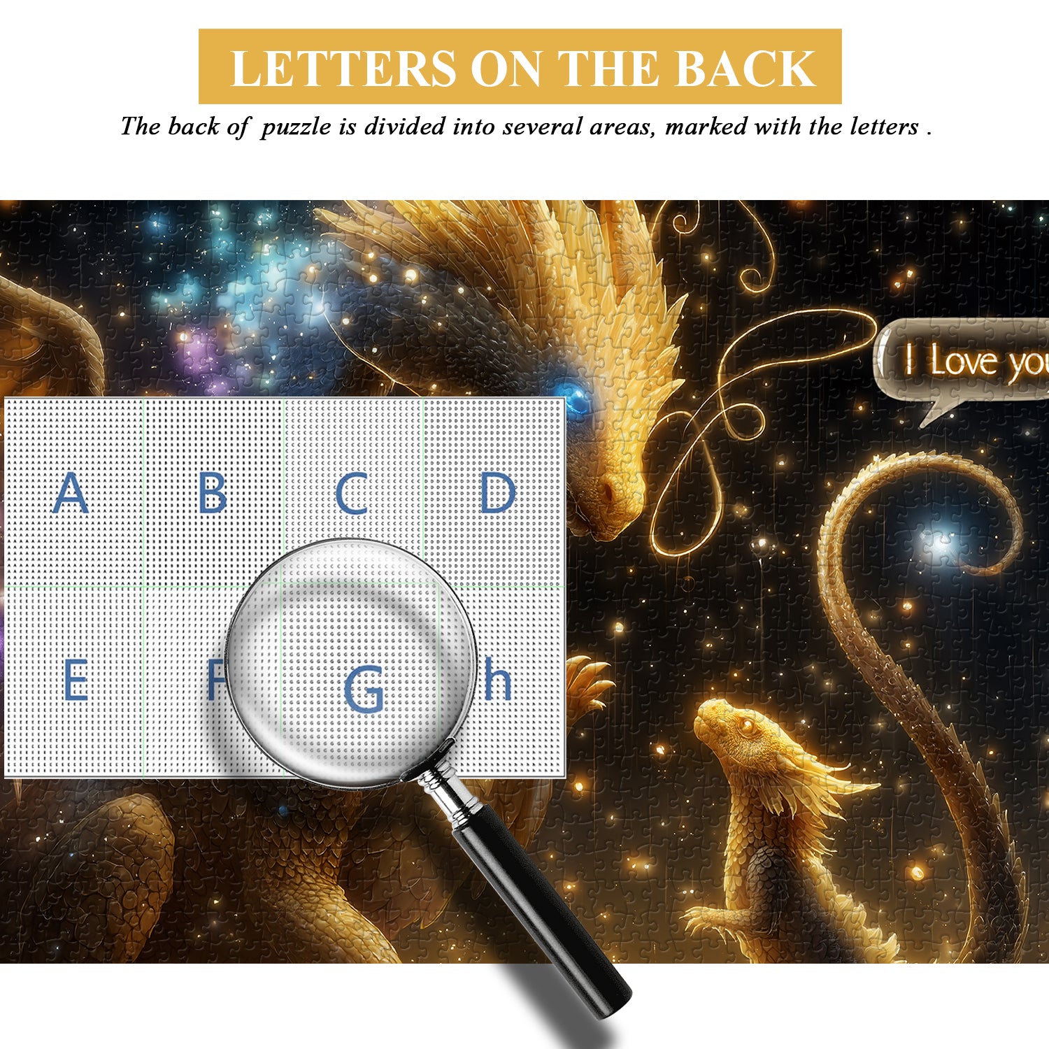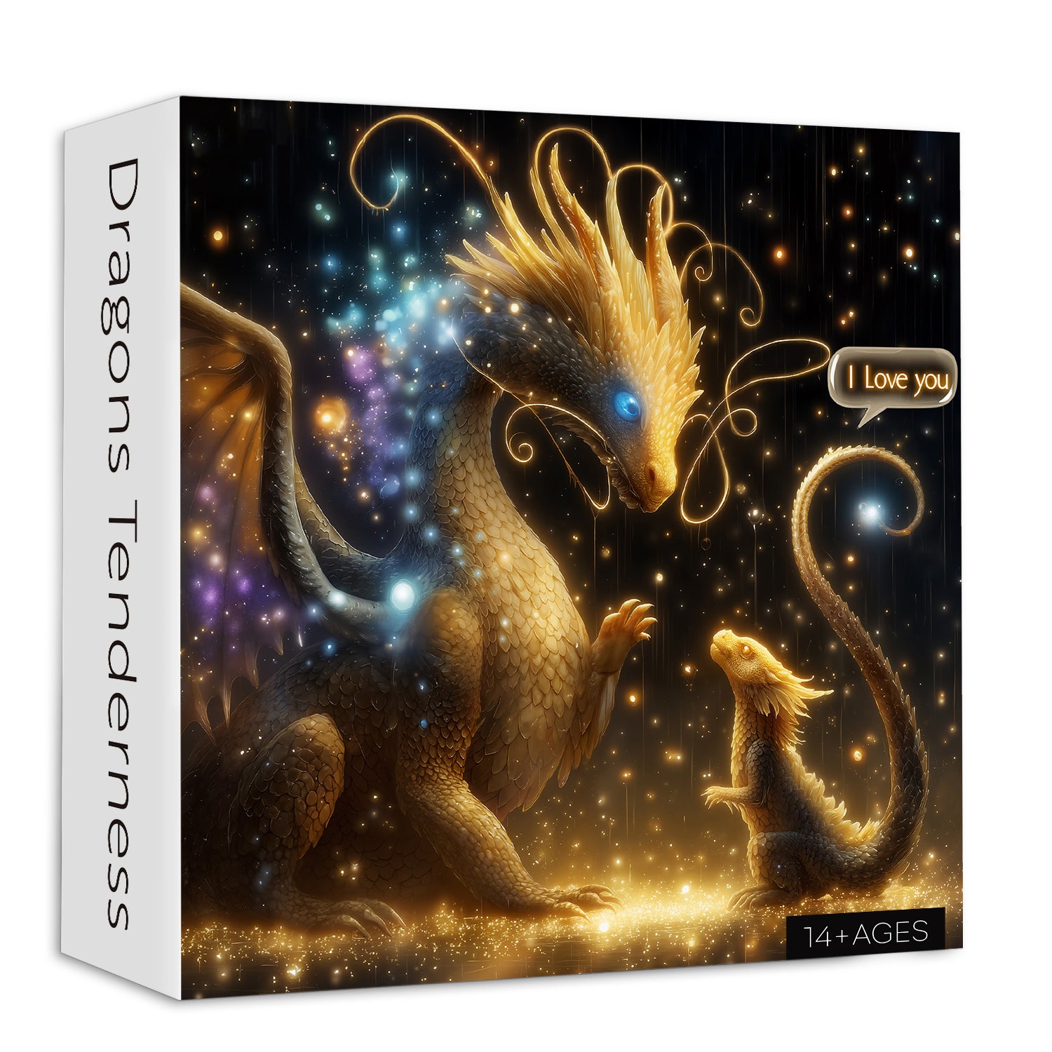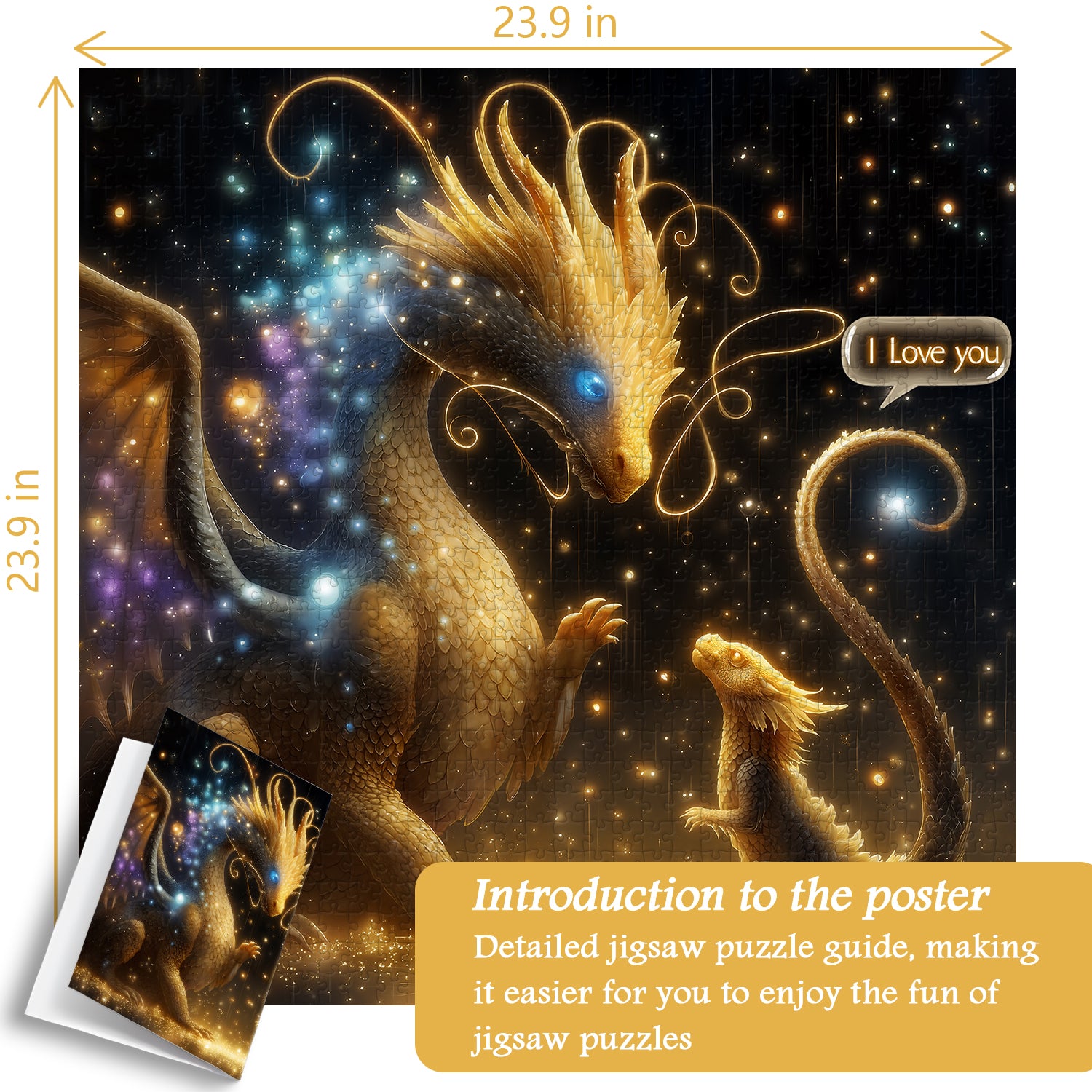 🐉✨Tendenze dei draghi: Il puzzle raffigura una scena commovente di un drago gigante e un giovane drago sotto un cielo stellato, mostrando il mistero e la parentela della razza dei draghi. L'interazione tra il drago e i suoi piccoli è piena di amore e cura; il drago adulto guarda teneramente il giovane, mentre il giovane drago dice al drago adulto: "Ti amo".🔥❤️