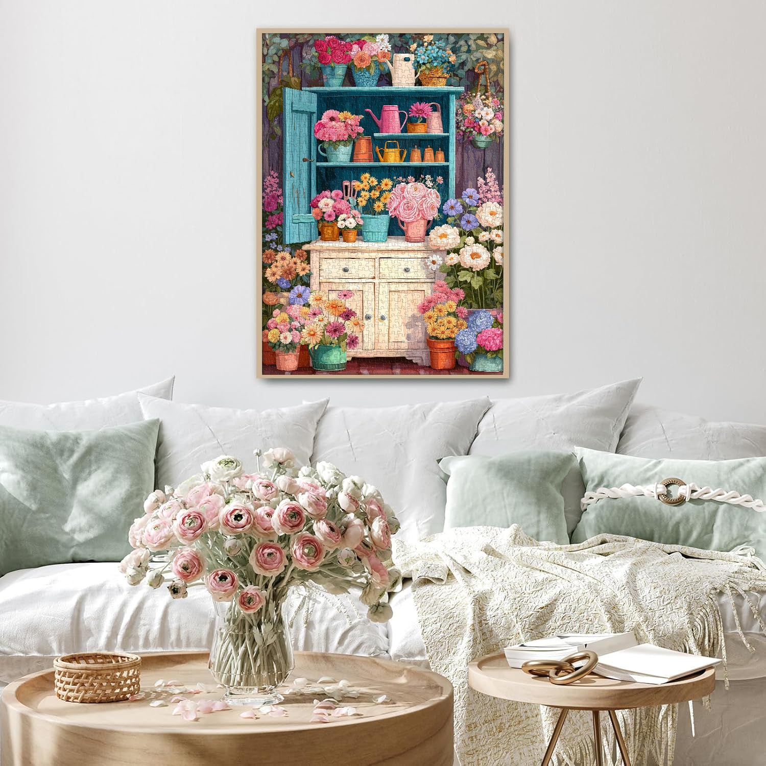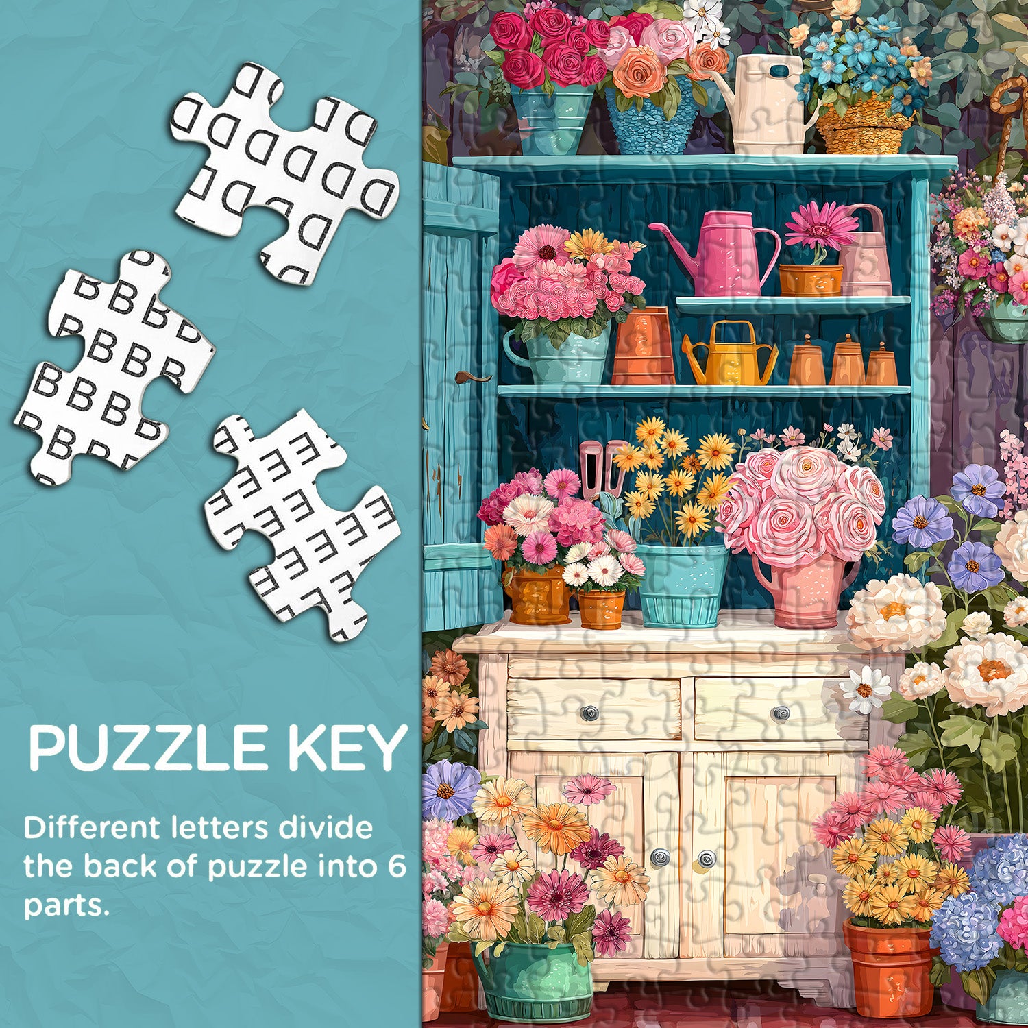 💐🖼️【Ritmo del gabinetto floreale】Questo puzzle è incentrato su una vivace fioriera, che mostra un angolo vivace di un giardino. L'armadietto è pieno di vari vasi da fiori e attrezzi da giardinaggio, creando un'atmosfera di stretto contatto con la natura.🌿✨