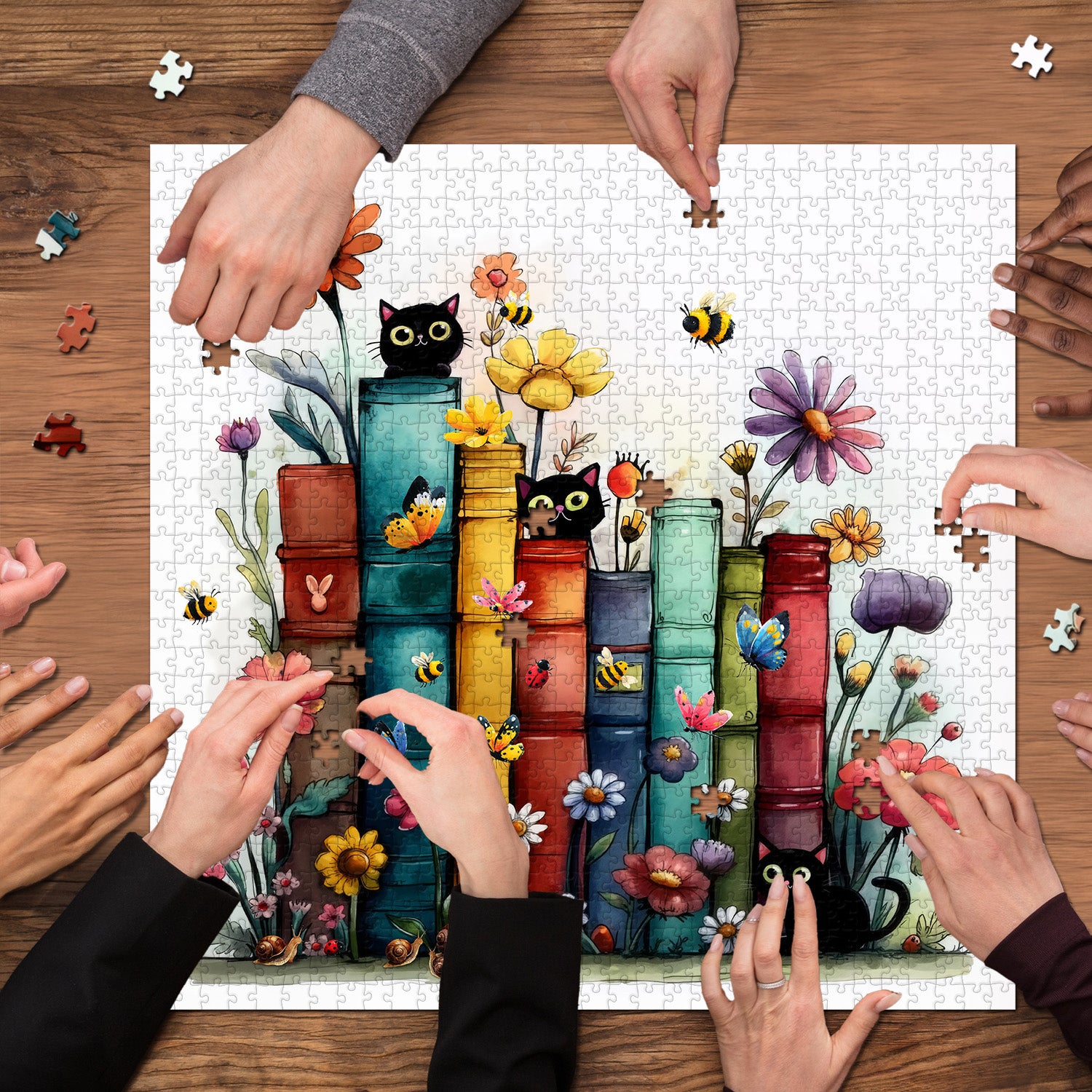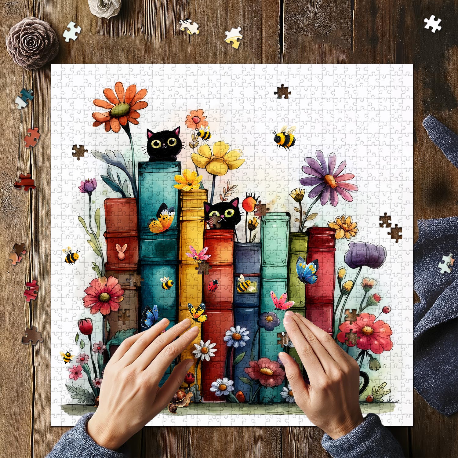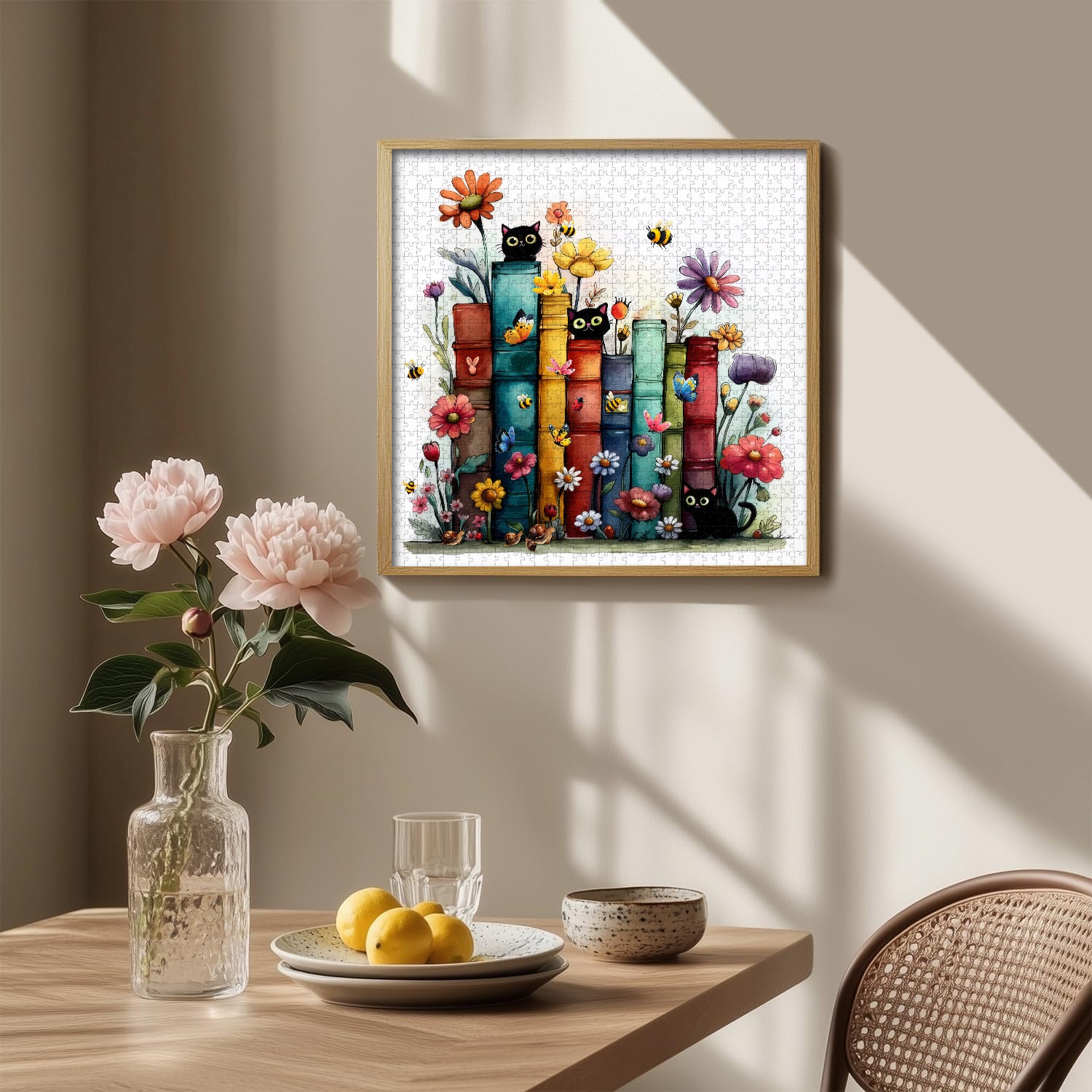 🐱📖Prenota Sussurri di gattoI gatti neri giocano tra i libri, ognuno con una postura unica, come se raccontassero la propria storia. Fiori vivaci e farfalle vivaci adornano le pagine, aggiungendo un tocco di natura al puzzle. Questo puzzle fonde perfettamente la saggezza dei libri con la bellezza di un giardino, ispirando la tua creatività.🌺💐