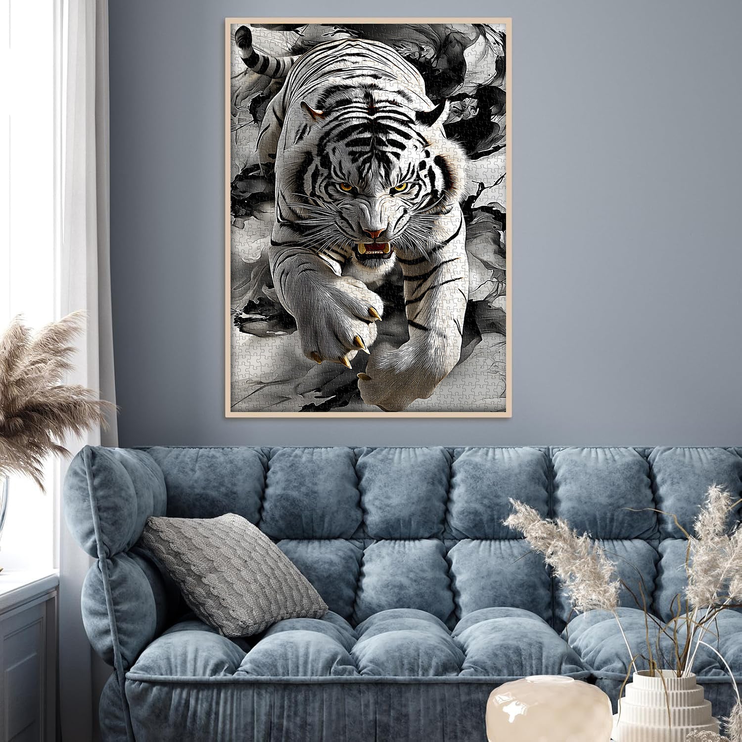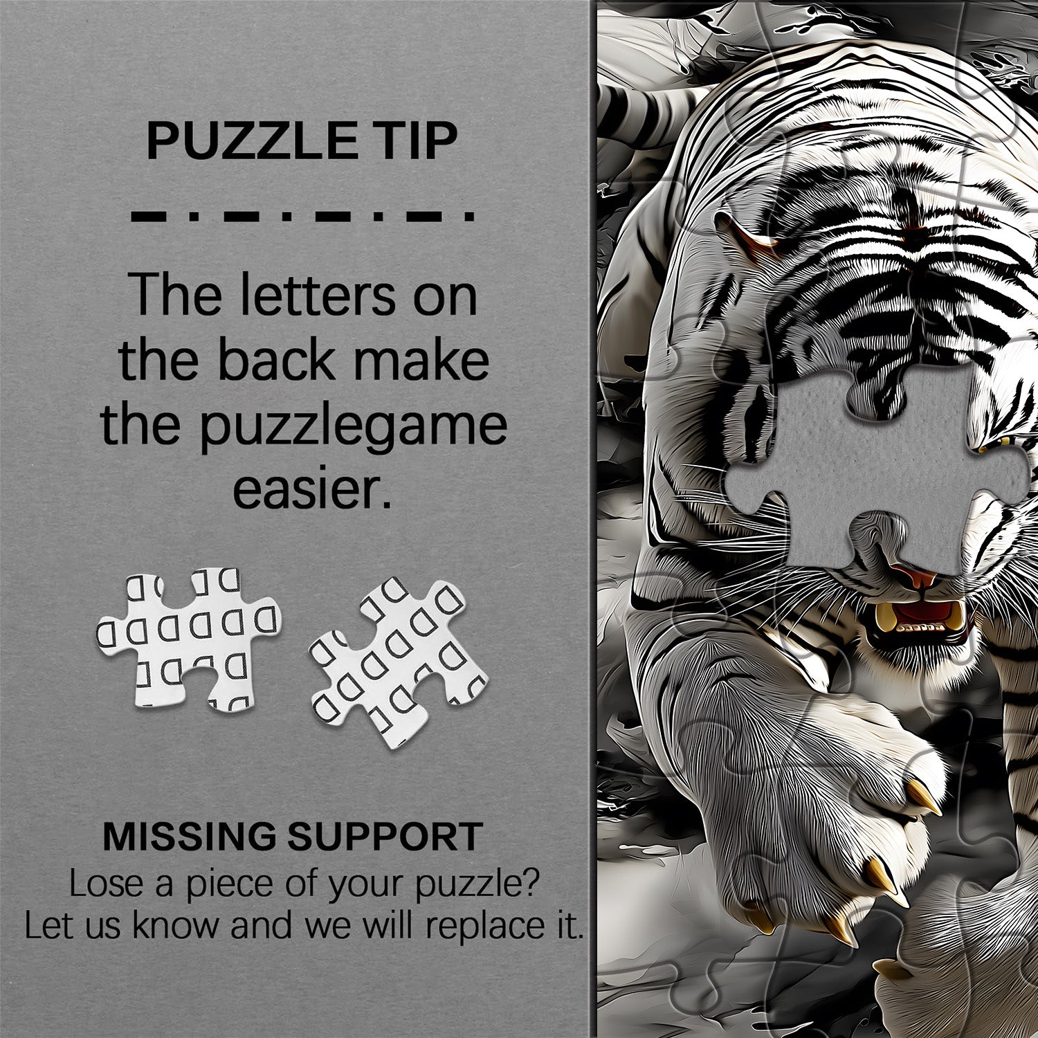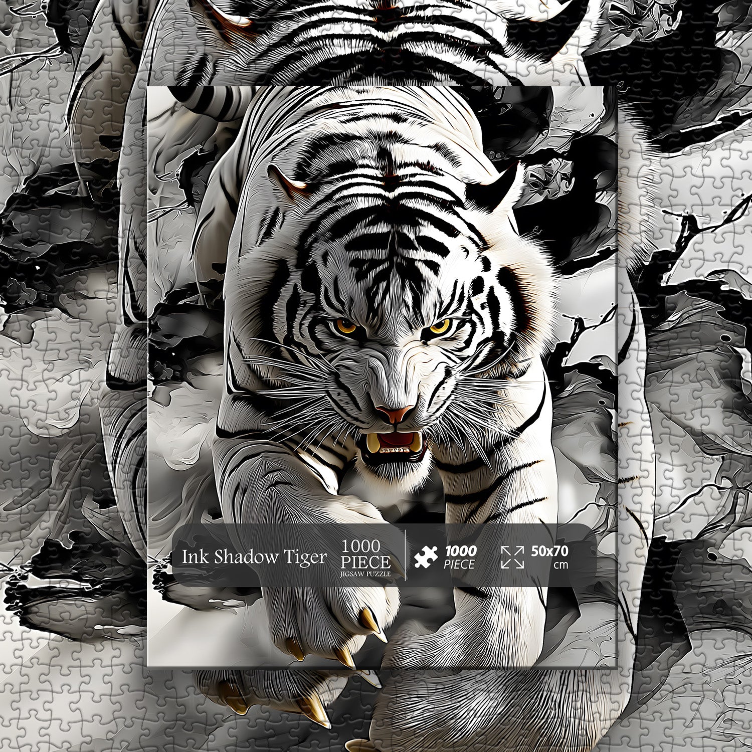 🐅🌪️ 【Tigre dell'ombra dell'inchiostro】Questo puzzle presenta una maestosa tigre con dettagli squisiti. Dalle strisce agli occhi, ogni elemento trasuda il potere e la forza della tigre. L'uso dei toni del nero, del bianco e del grigio non solo evidenzia i segni della tigre, ma aggiunge anche un tocco di mistero e abilità artistica.🎨