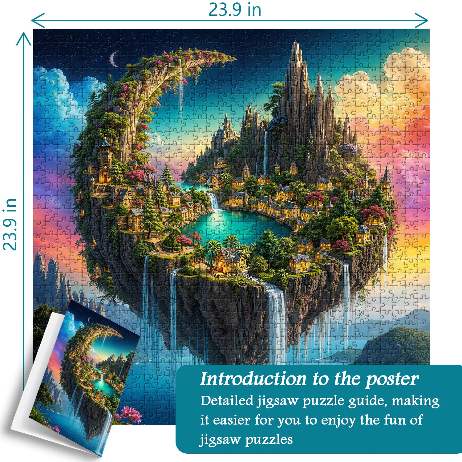 🏰🌅Il pacchetto include: Puzzle colorato ad alta definizione da 1000 pezzi, libro di consultazione del puzzle e scatola robusta.