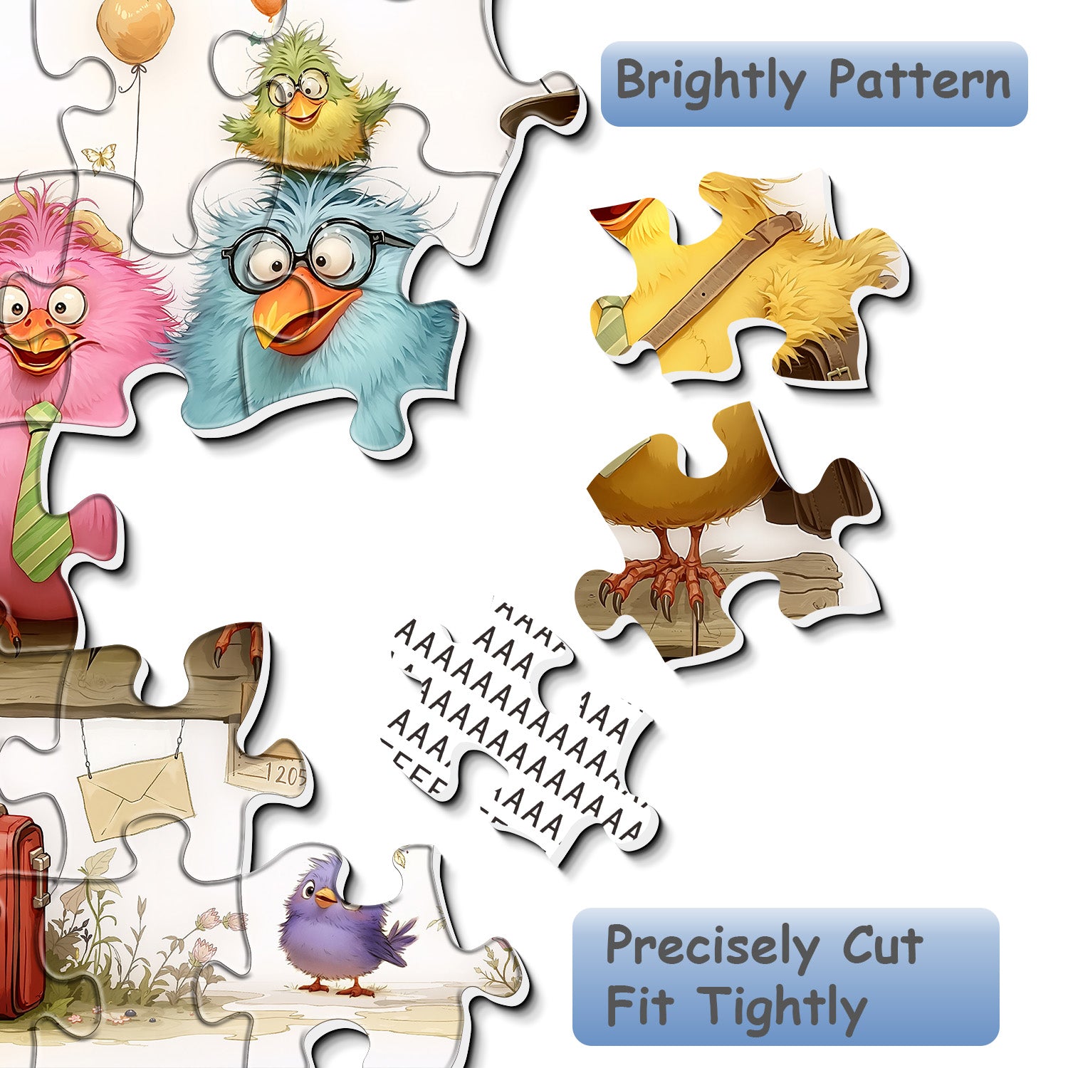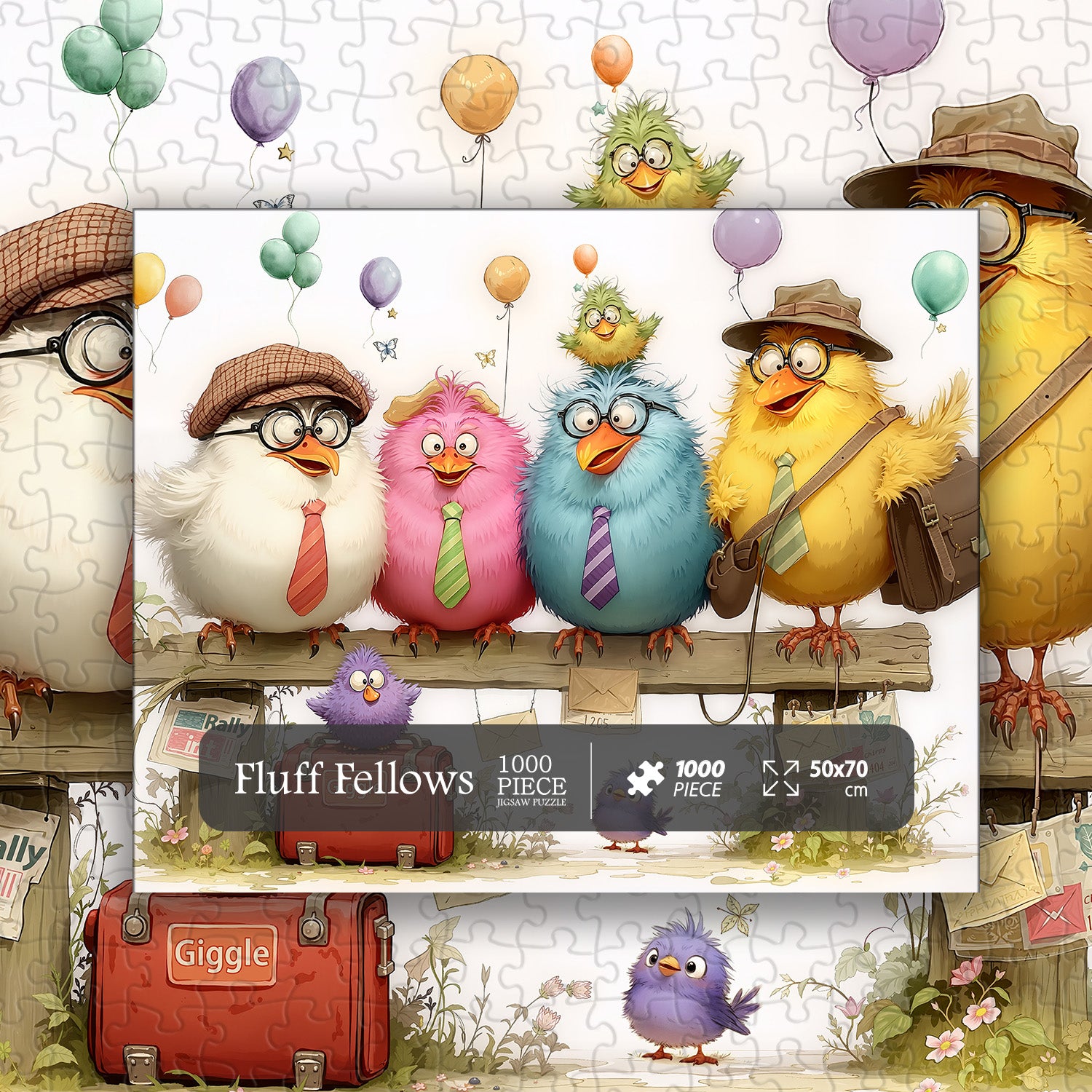 🐦💼Fluff Fellows Jigsaw Puzzle:The "Fluff Fellows" puzzle depicts a group of stylishly dressed and well-equipped birds preparing for a wondrous journey. Each little bird is dressed in brightly colored clothing, complete with a tie, hat, and glasses. They carry briefcases and exude energy, ready to embark on their journey to work.👒🌺